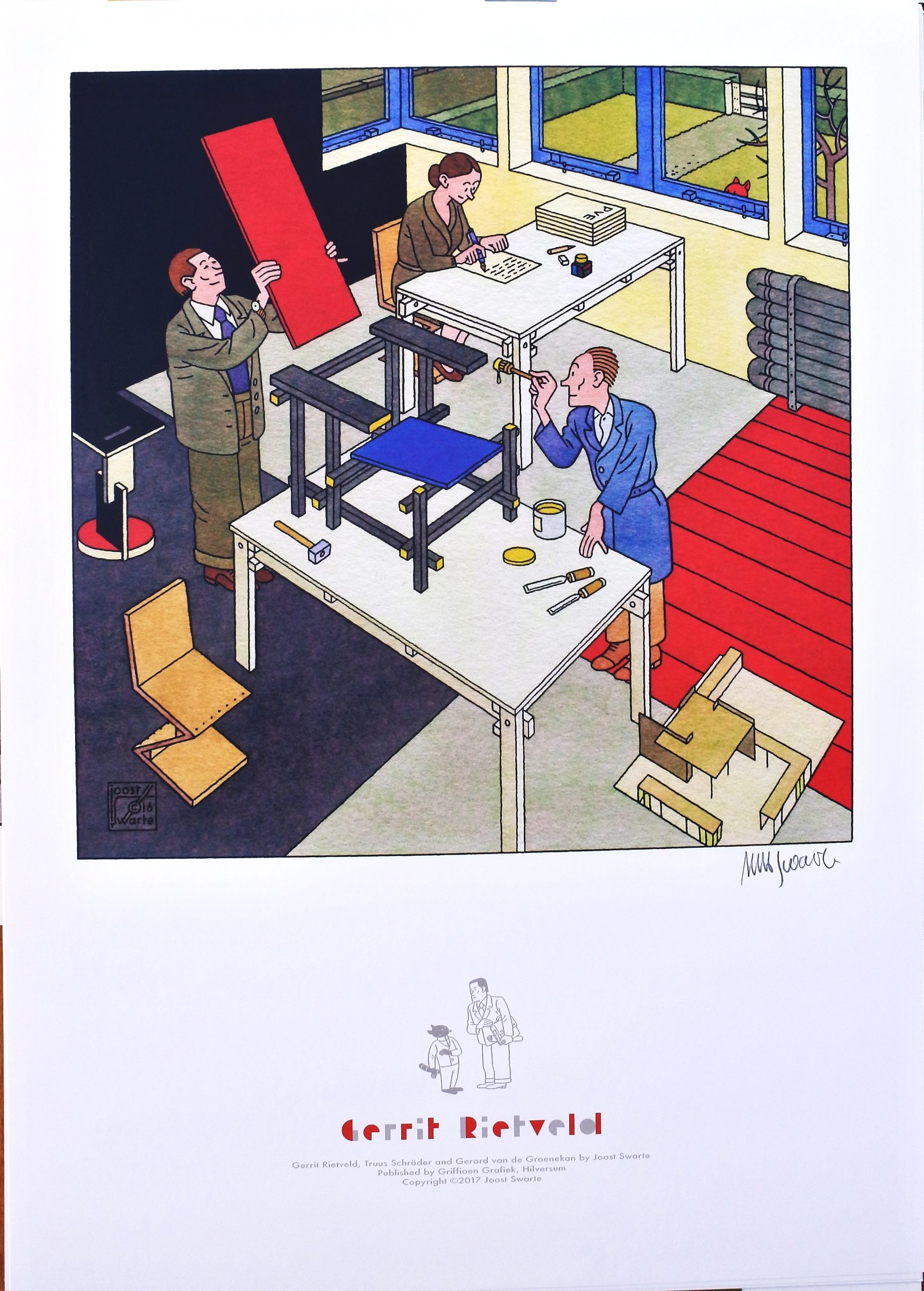 Joost Swarte, Rietvelt Gerrit, serigrafía edición especial, firmado a lápiz, 70×50 cms.