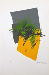 Jordi Teixidor, composición abstracta I, serigrafía edición 175 ejemplares, numerada h.c. y firmada a lápiz en 1982, 50×32 cms.