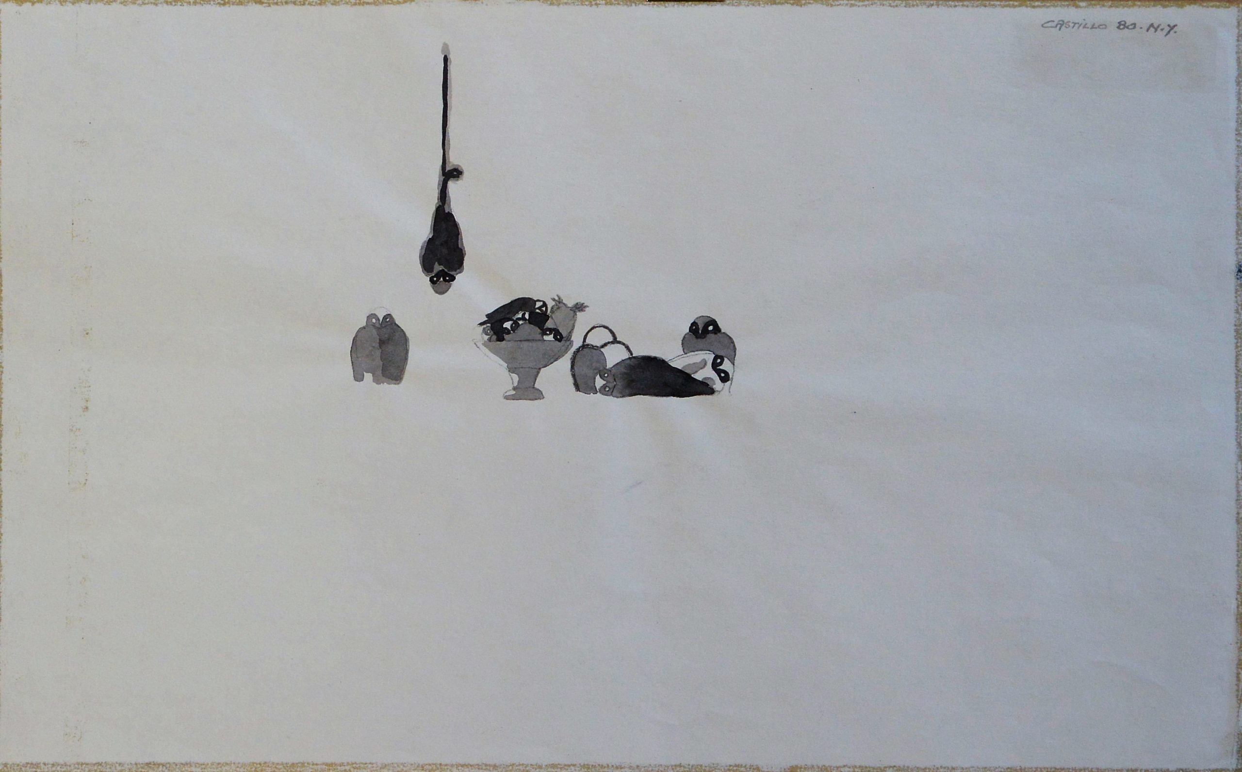 Jorge Castillo 1980 N. York, Bodegón, Tinta china papel, 28×45 cms.