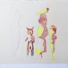 Jorge Castillo, Compañeros II, litografía troquelada y coloreada al guache por el artista, edición 25 ejemplares, numerado y firmado a lápiz, 56×79 cms.
