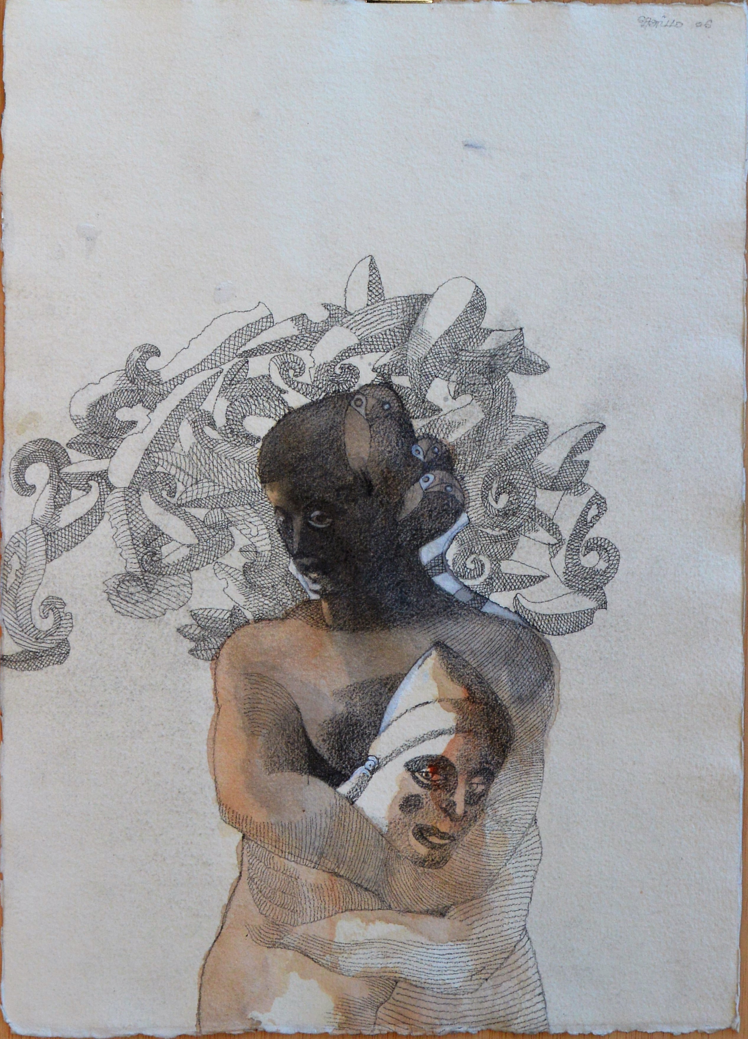 Jorge Castillo 2006 Madrid, A propósito de la muerte, lápiz y acuarela papel artesanal, catalogado, 44×32 cms.