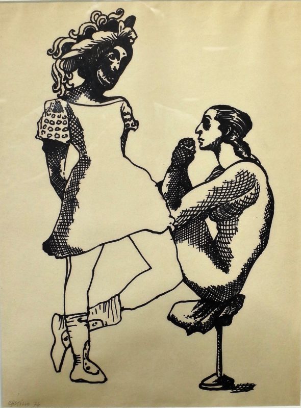 Jorge Castillo 74, Entreacto, dibujo tinta papel, enmarcado, dibujo 40×30 cms. y marco 52×42 cms.