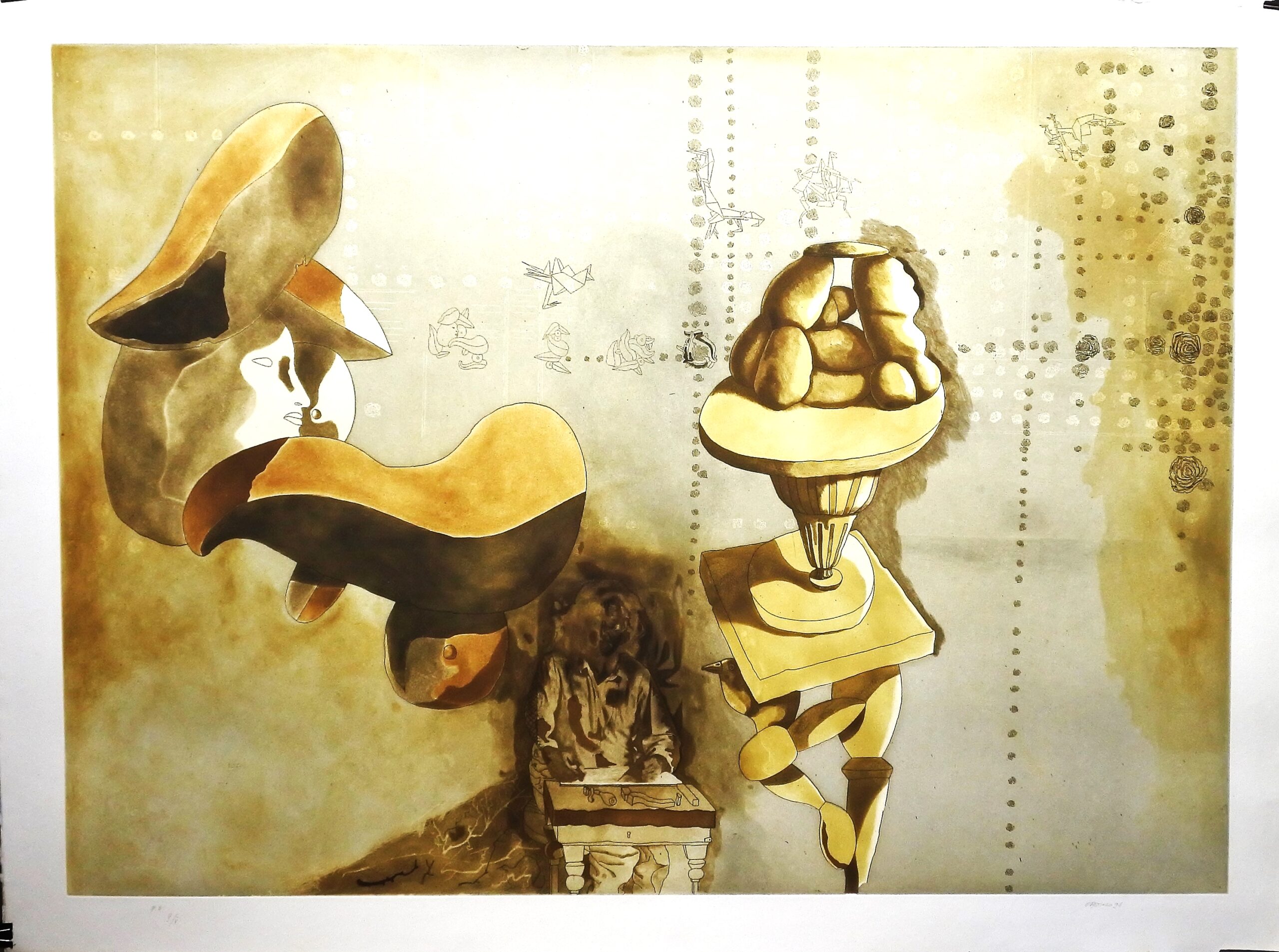 Jorge Castillo, Bodegón, grabado aguafuerte gran formato, edición 60 ejemplares, numerado y firmado a lápiz, plancha 86×118 y papel 99×130 cms.