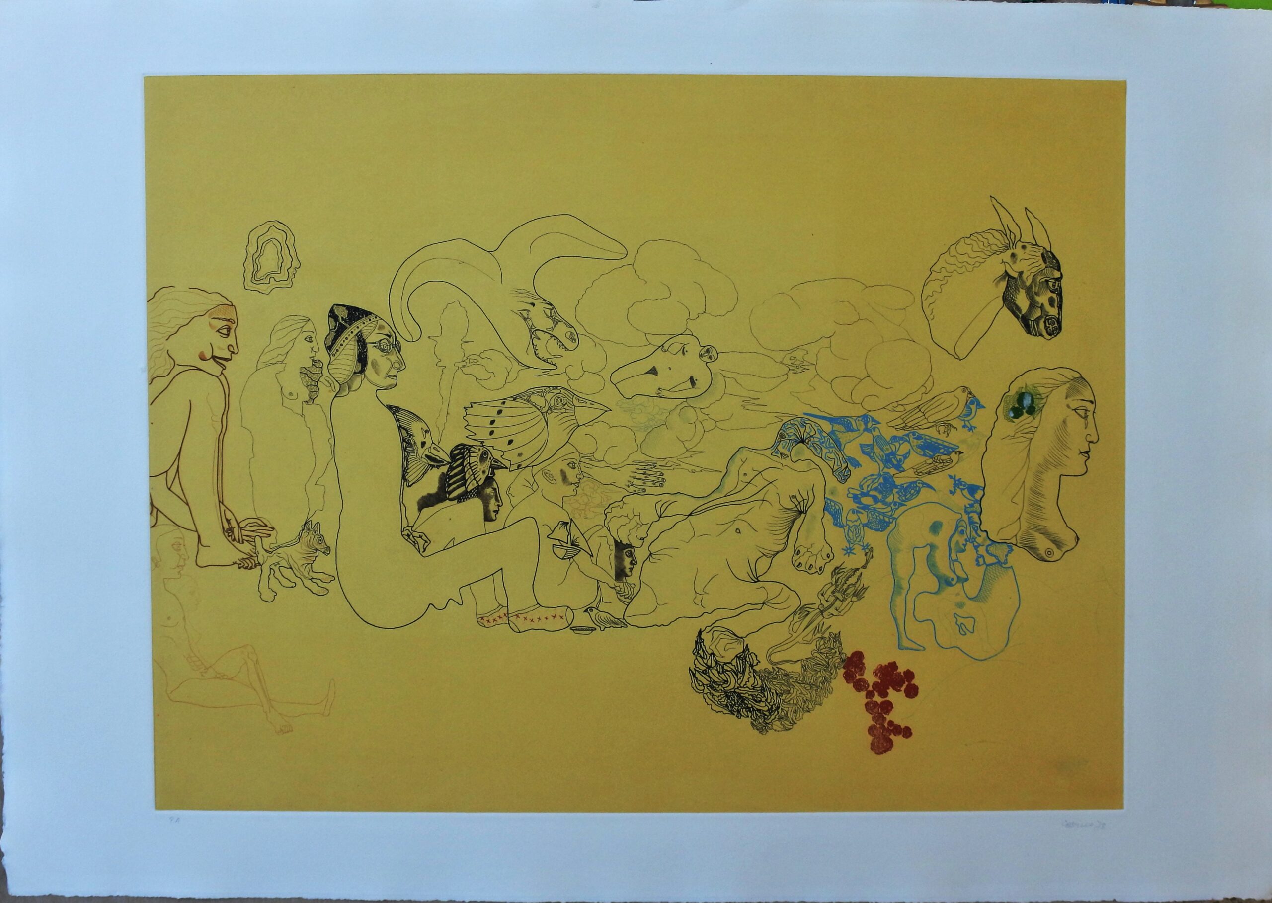 Jorge Castillo, Escena campestre, grabado aguafuerte, edición 75 ejemplares, numerado, datado 78 y firmado a lápiz, plancha 57×76 y papel 70×100 cms.
