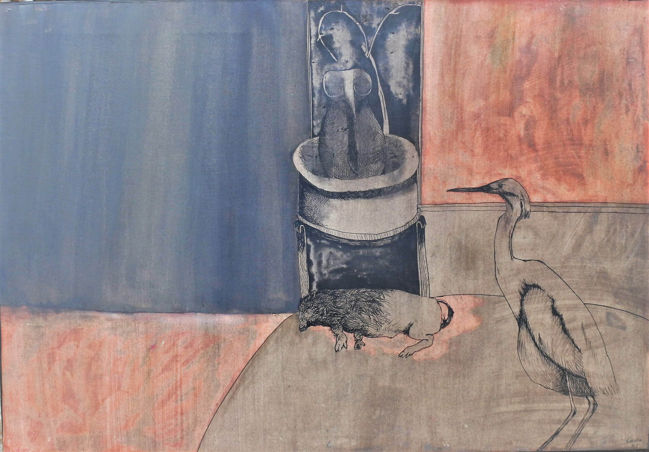Jorge Castillo, La garza, 1962, pintura acrílico sobre lienzo, 67×97 cms.