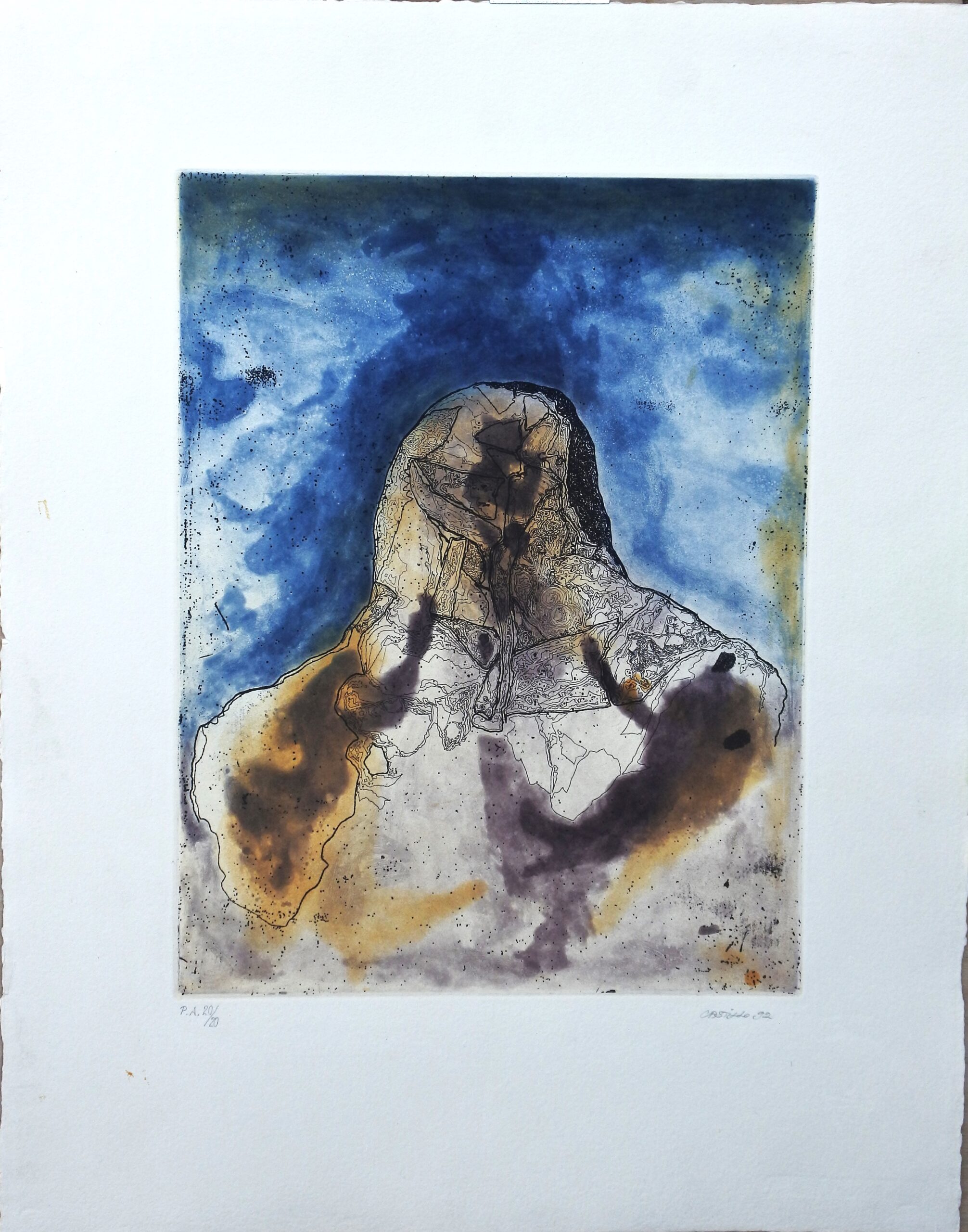 Jorge Castillo, Monte sagrado, grabado aguafuerte, numerado ea, datado 92 y firmado a lápiz, plancha 42×32 y papel 63×50 cms.