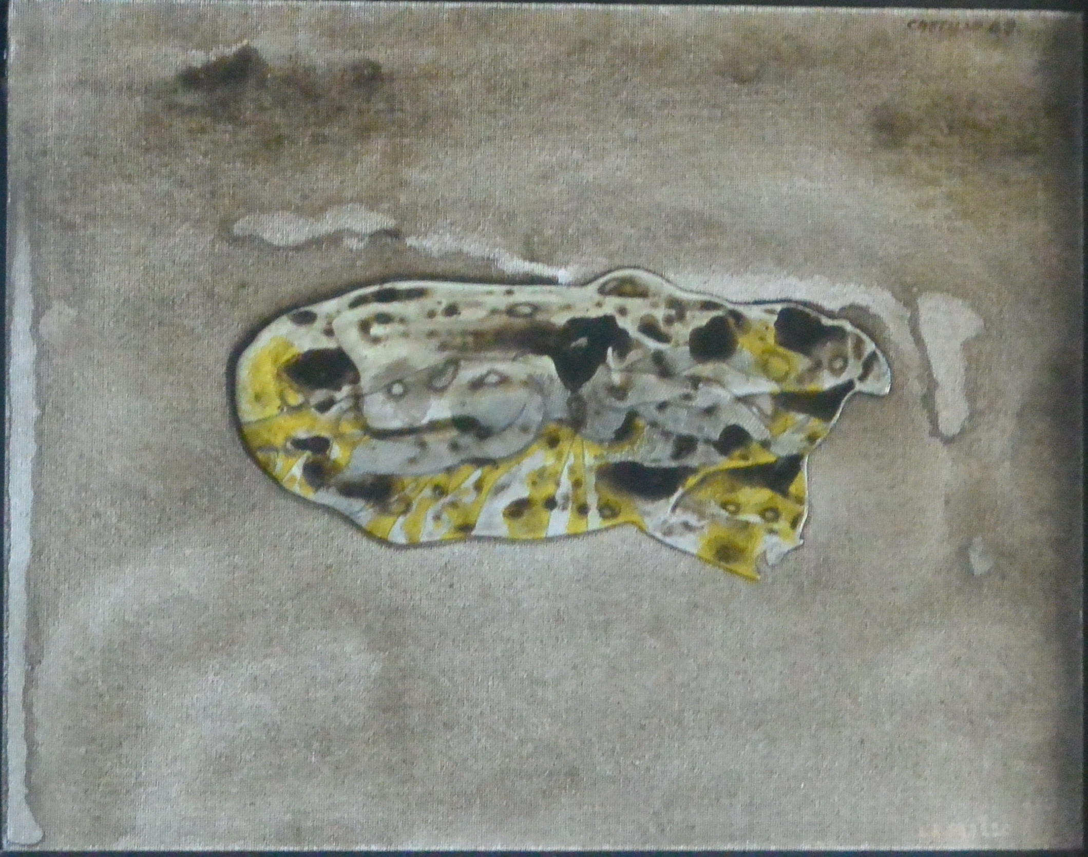 Jorge Castillo, Mujer acostada, técnica mixta sobre lienzo, firmado en 1989 New York, enmarcado, pintura 28×35 cms. y marco 49×56 cms.