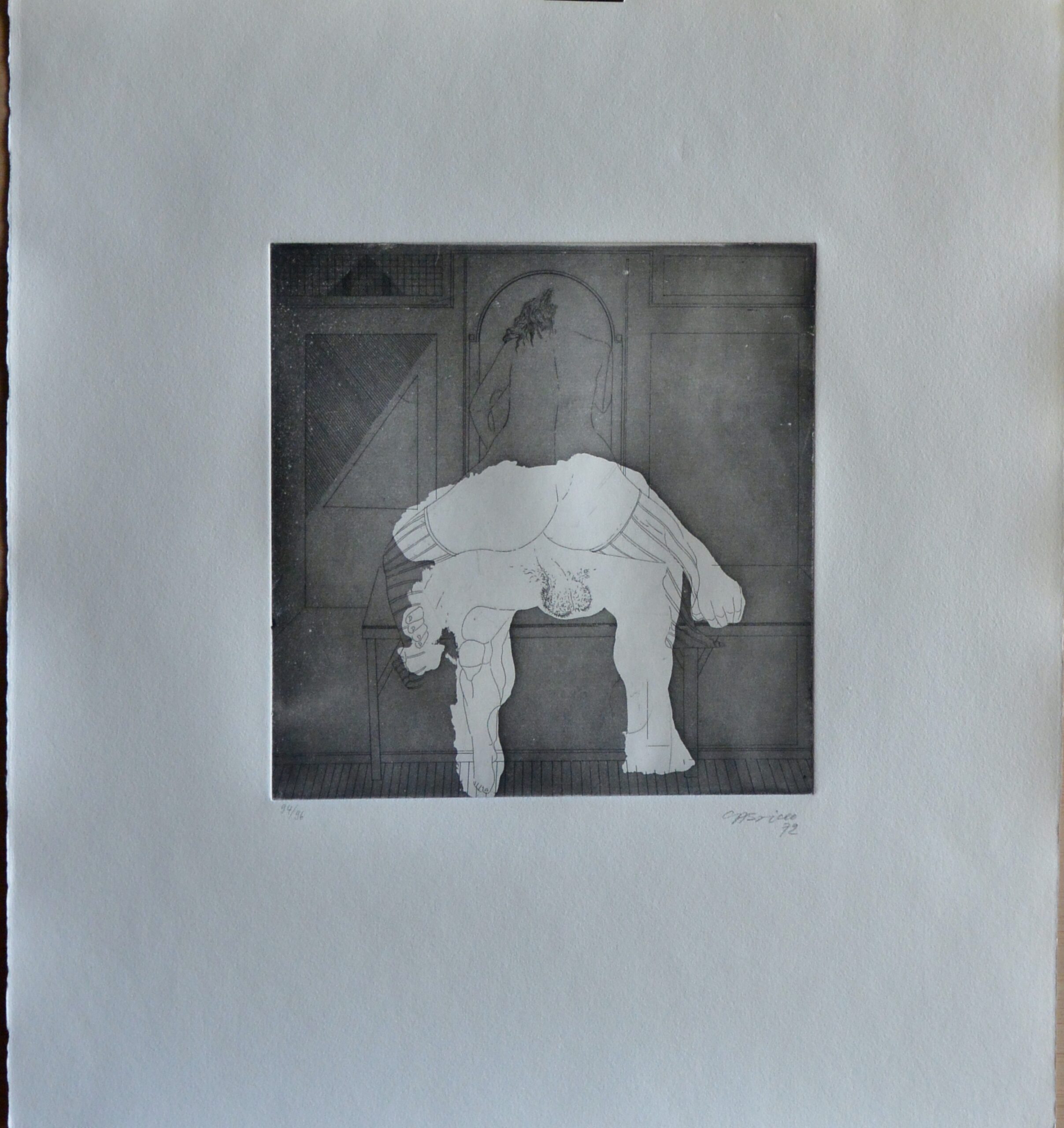 Jorge Castillo, Pornographismo I, Grabado aguafuerte, edición 96 ejemplares, numerado y firmado a lápiz en 1972, papel 41×38 cms. y plancha 19×19 cms.