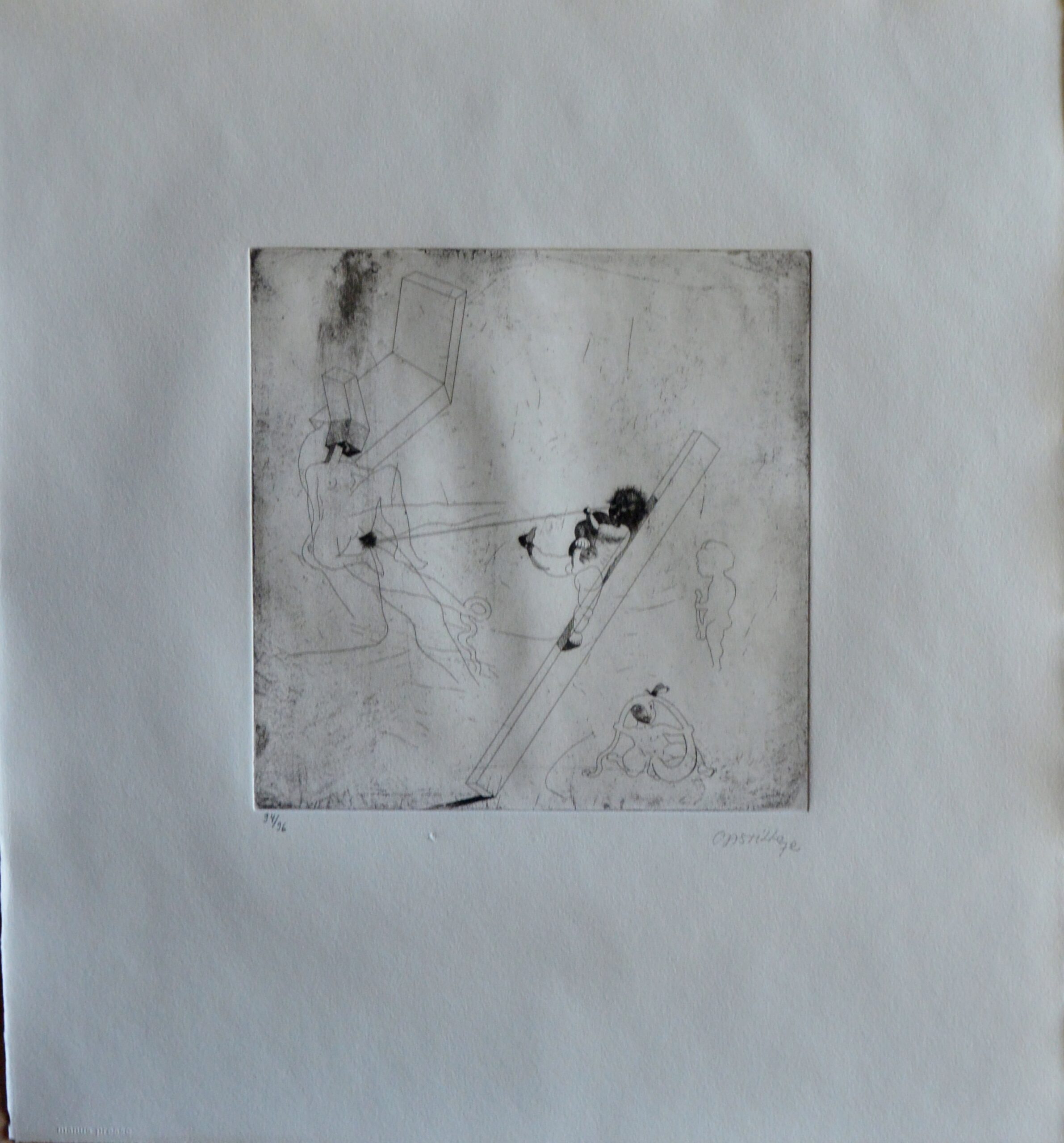 Jorge Castillo, Pornographismo IX, Grabado aguafuerte, numerado y firmado a lápiz en 1972, papel 41×38 cms. y plancha 19×19 cms.