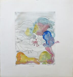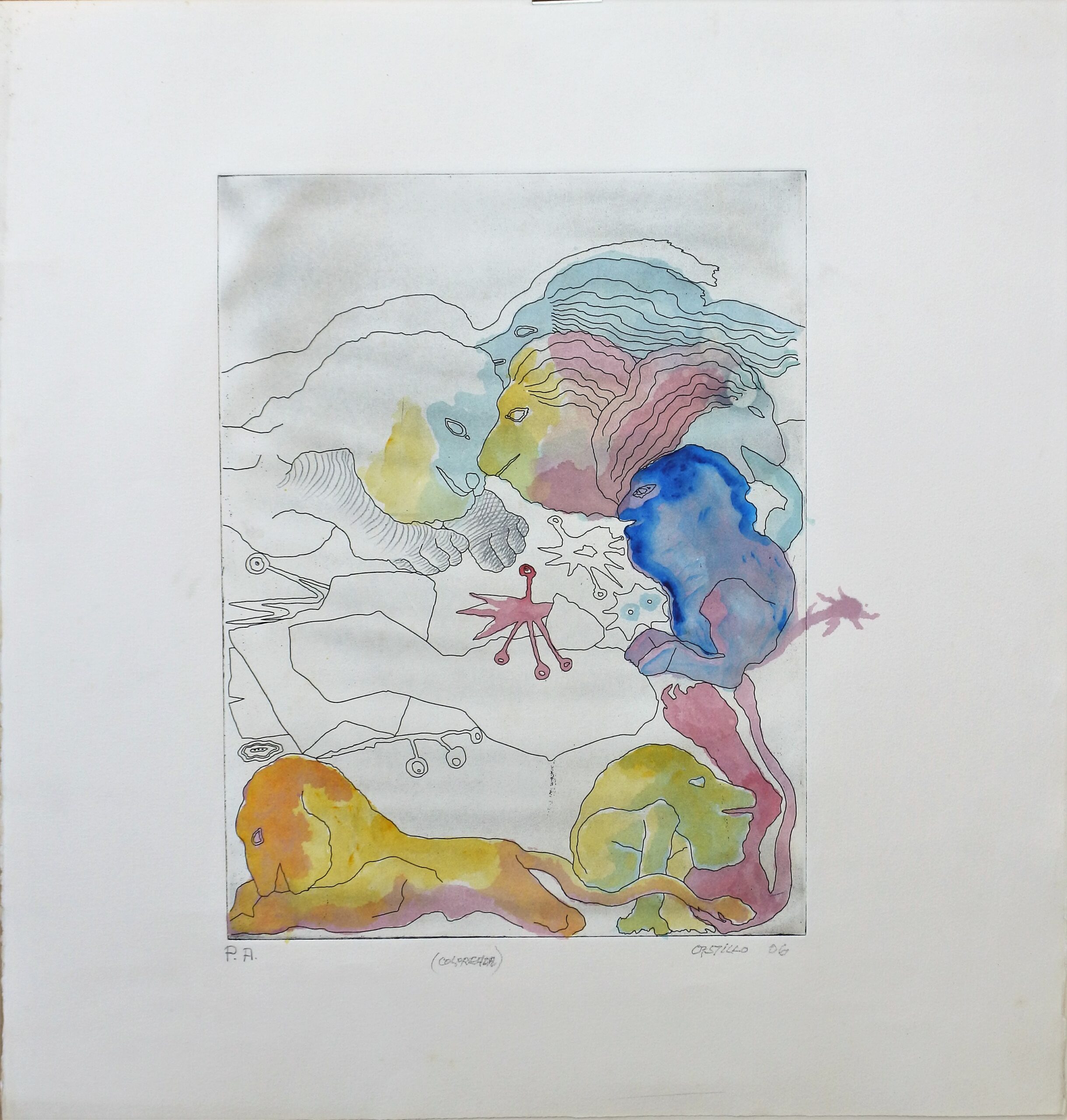 Jorge Castillo – «Un lugar en la selva» grabado aguafuerte, prueba color