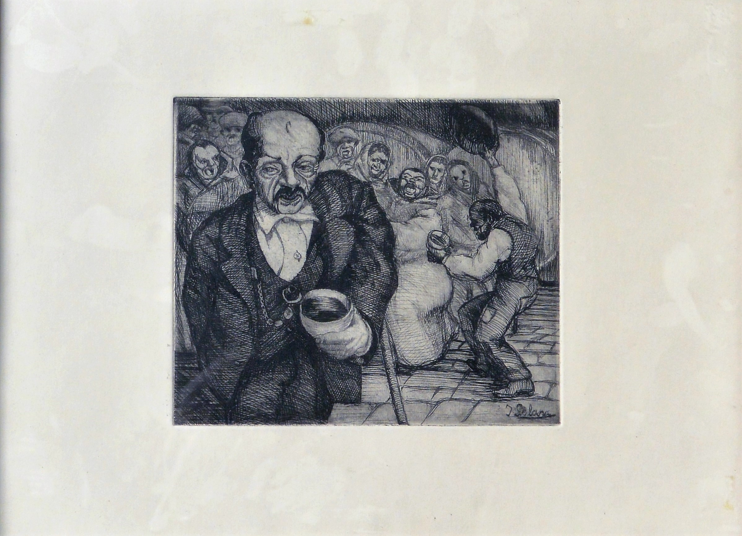 José Gutierrez Solana, El cojo de El Rastro, grabado, firmado en plancha, enmarcado, huella 17×20 cms. papel 29×39 y marco 36,50×46,50 cms.