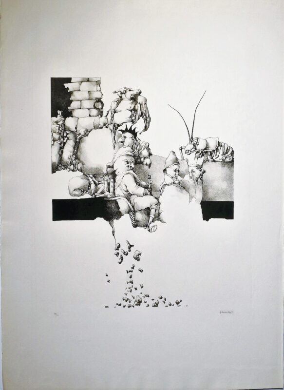 José Hernandez 1971, Opera II, litografia, edición 60 ejemplares, numerada datada y firmada a lápiz, 77×55 cms.