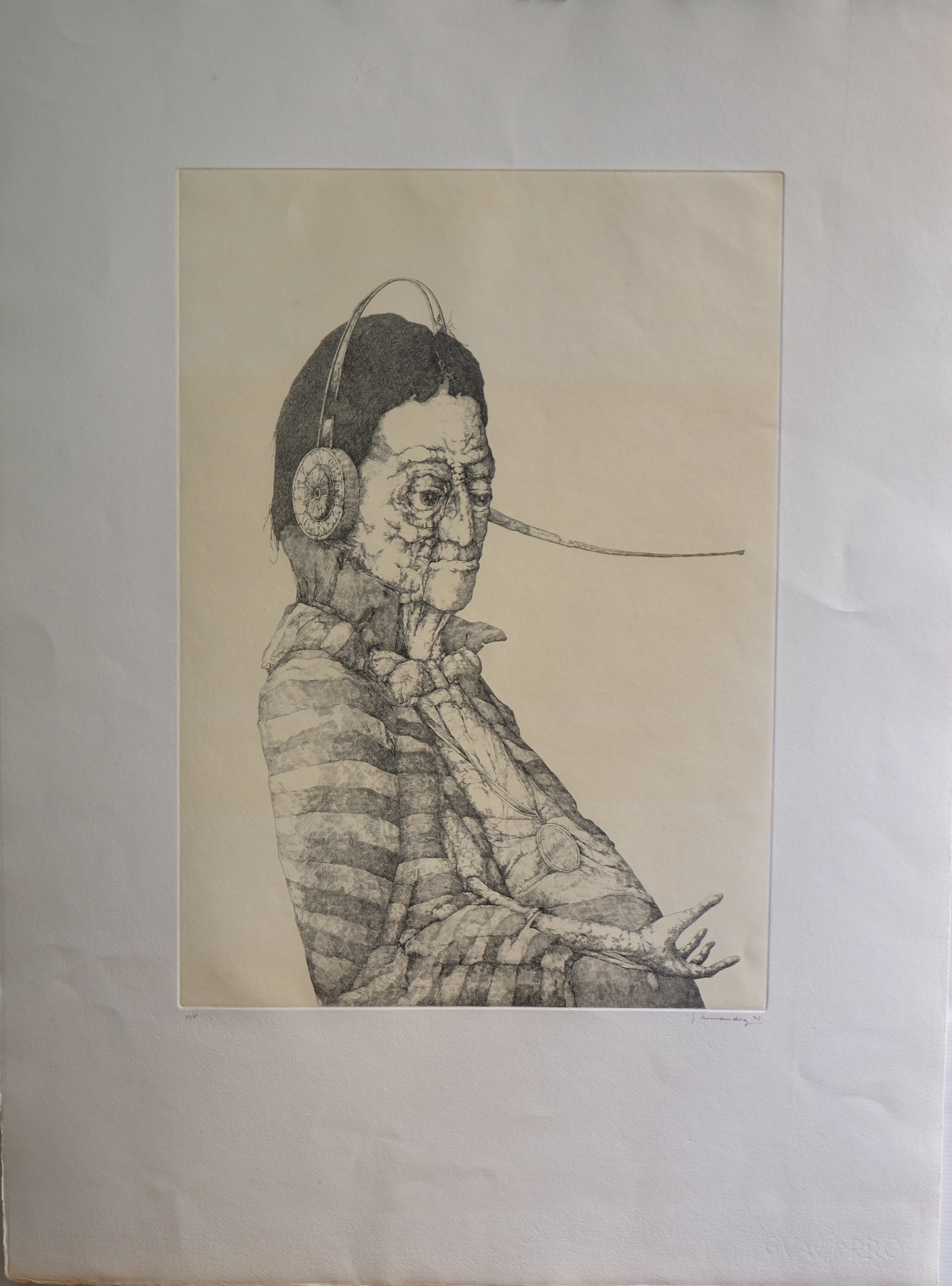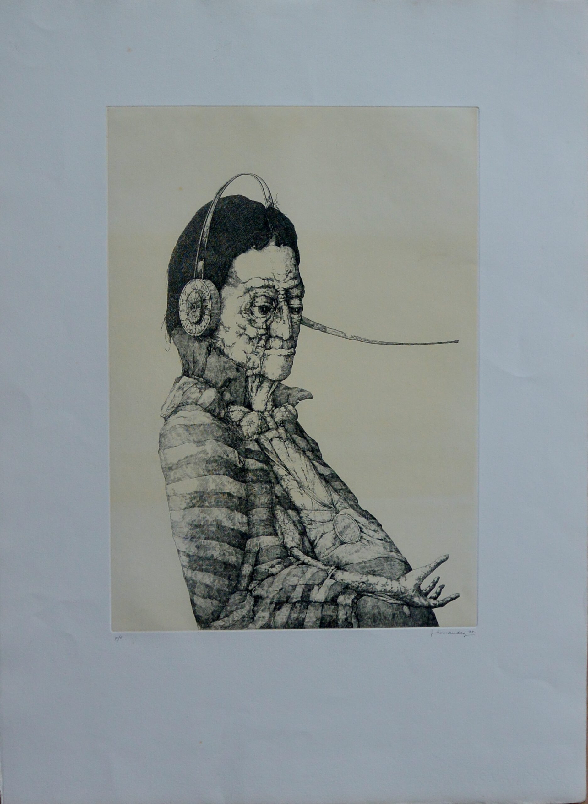 José Hernandez, caballero del eterno retorno, grabado p/e numerado y firmado en 1.975 a lápiz, plancha 49×35 y papel 76×56 cms.