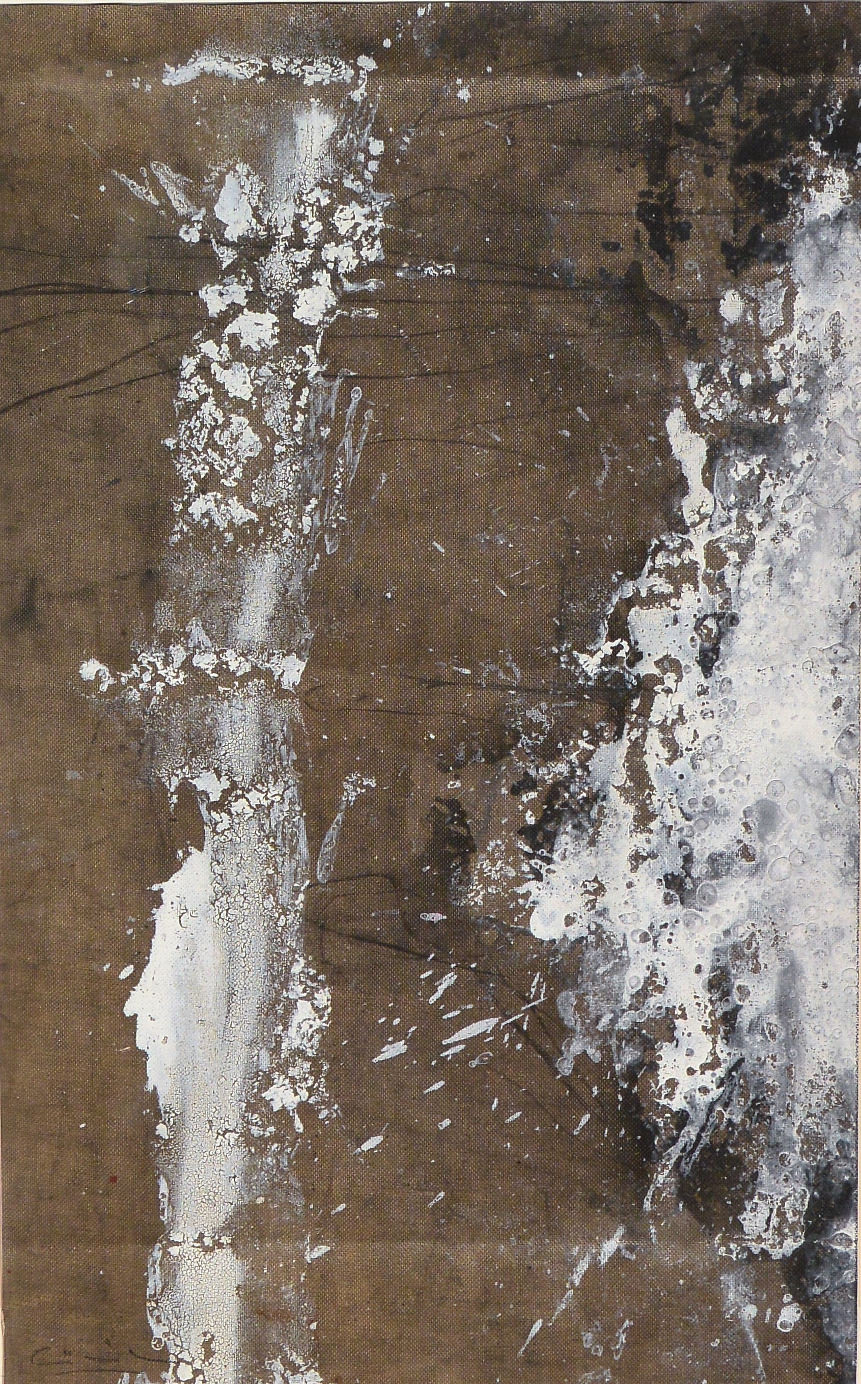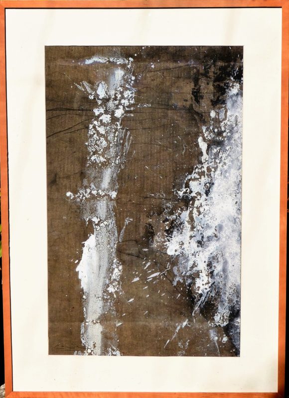 Jose Manuel Ciria, Blanco agitado, pintura técnica mixta sobre loneta plástica, enmarcado, pintura 80×50 cms. y marco 102×72 cms.