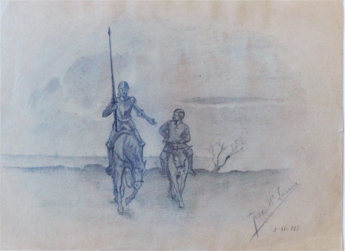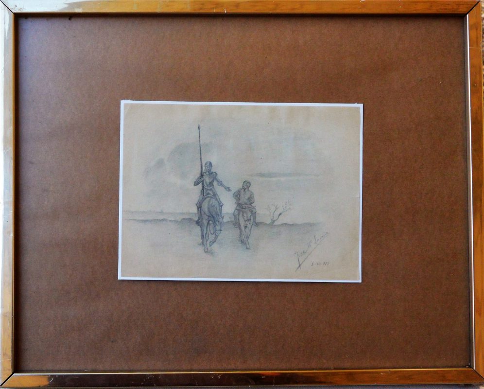 Jose Maria Lacruz, Don Quijote y Sancho, dibujo lápiz papel, enmarcado, dibujo 21,50×16 cms. y marco 35×44 cms.