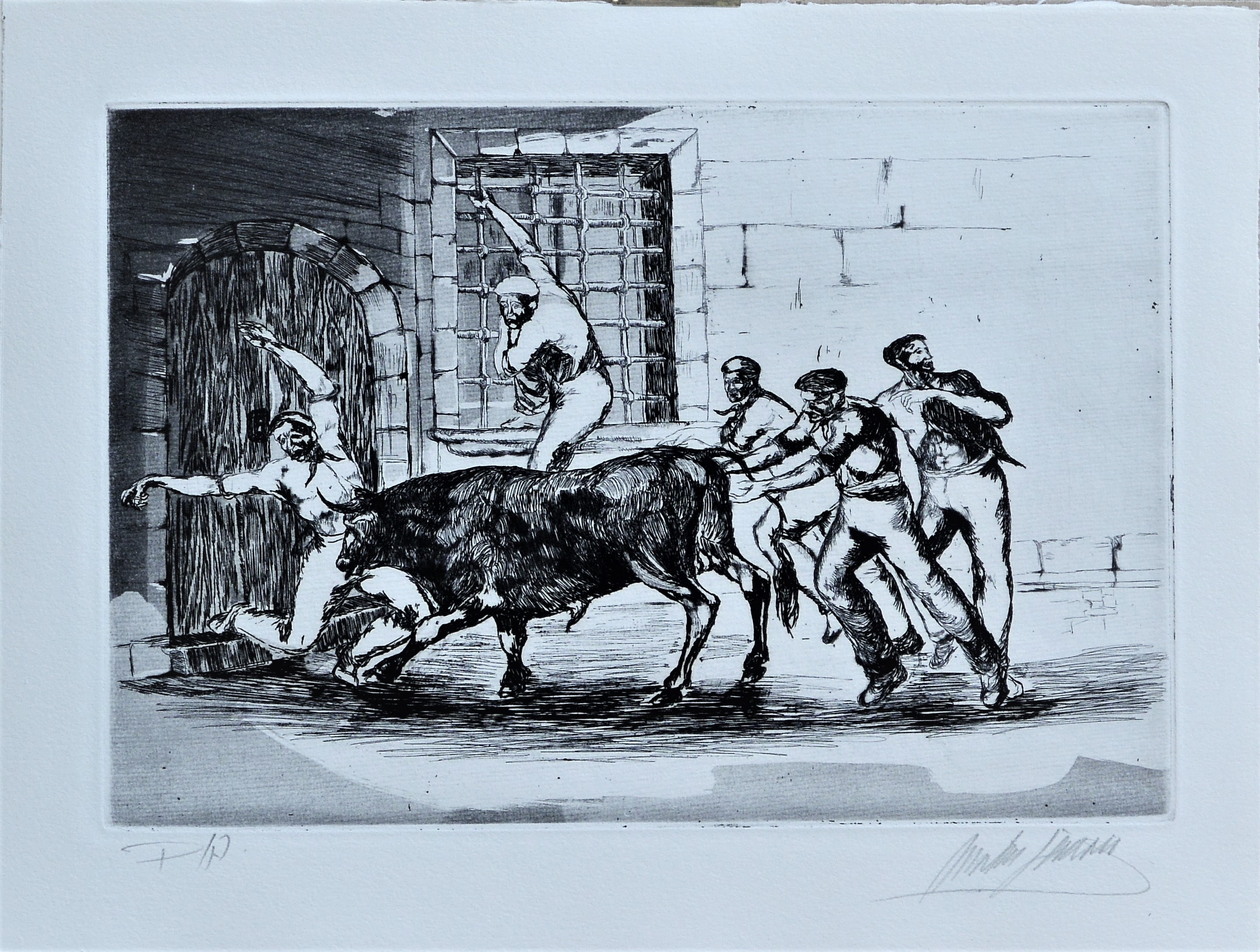 José Martín Simón – «Tauromaquia, toros por las calles» grabado aguarfuerte