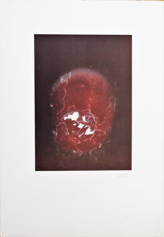 José Orús, La voz del poeta, litografía, edición 250 ejemplares, numerada y firmada a lápiz, plancha 29×21 cms. y papel 49,50×34,50 cms. Homenaje a Miguel Labordeta. Se acompaña con un poema de Miguel Labordeta
