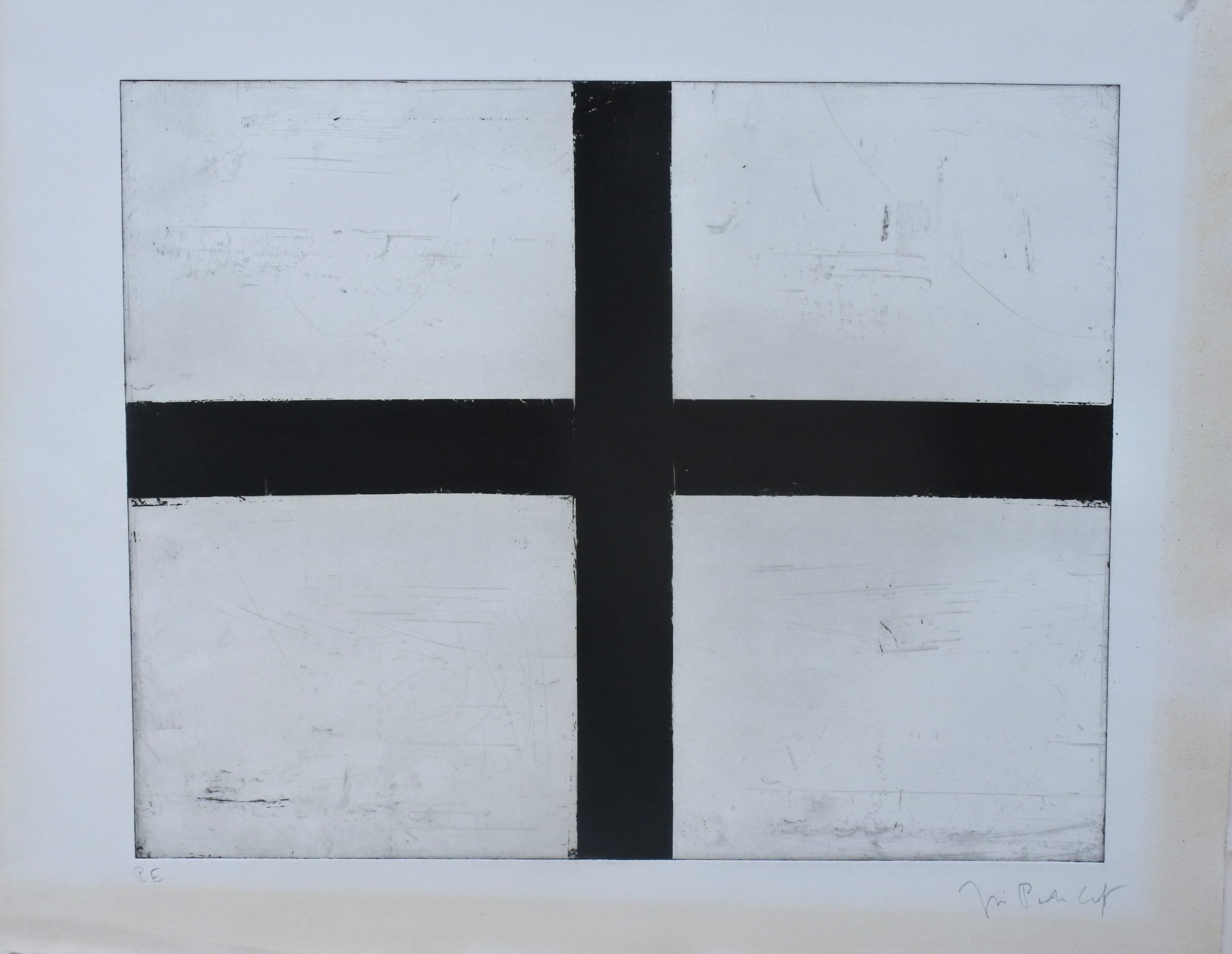 Jose Pedro Croft, Blak cross, grabado aguafuerte, numerado p.e. y firmado a lápiz, plancha 39×49 cms. y papel 50×64 cms