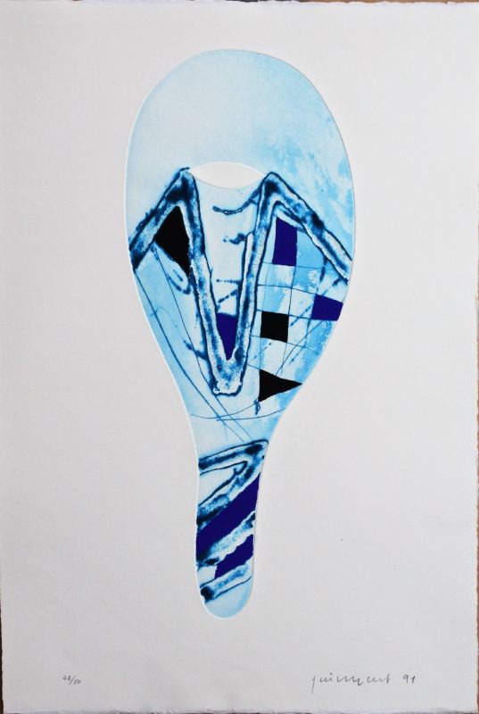 Josep Guinovart, Nocturn-1, grabado aguafuerte coloreado a mano, edición 50 ejemplares, numerado, datado 91 y firmado a lápiz, plancha 45×18 cms. mancha, y papel 57×38,5 cms.