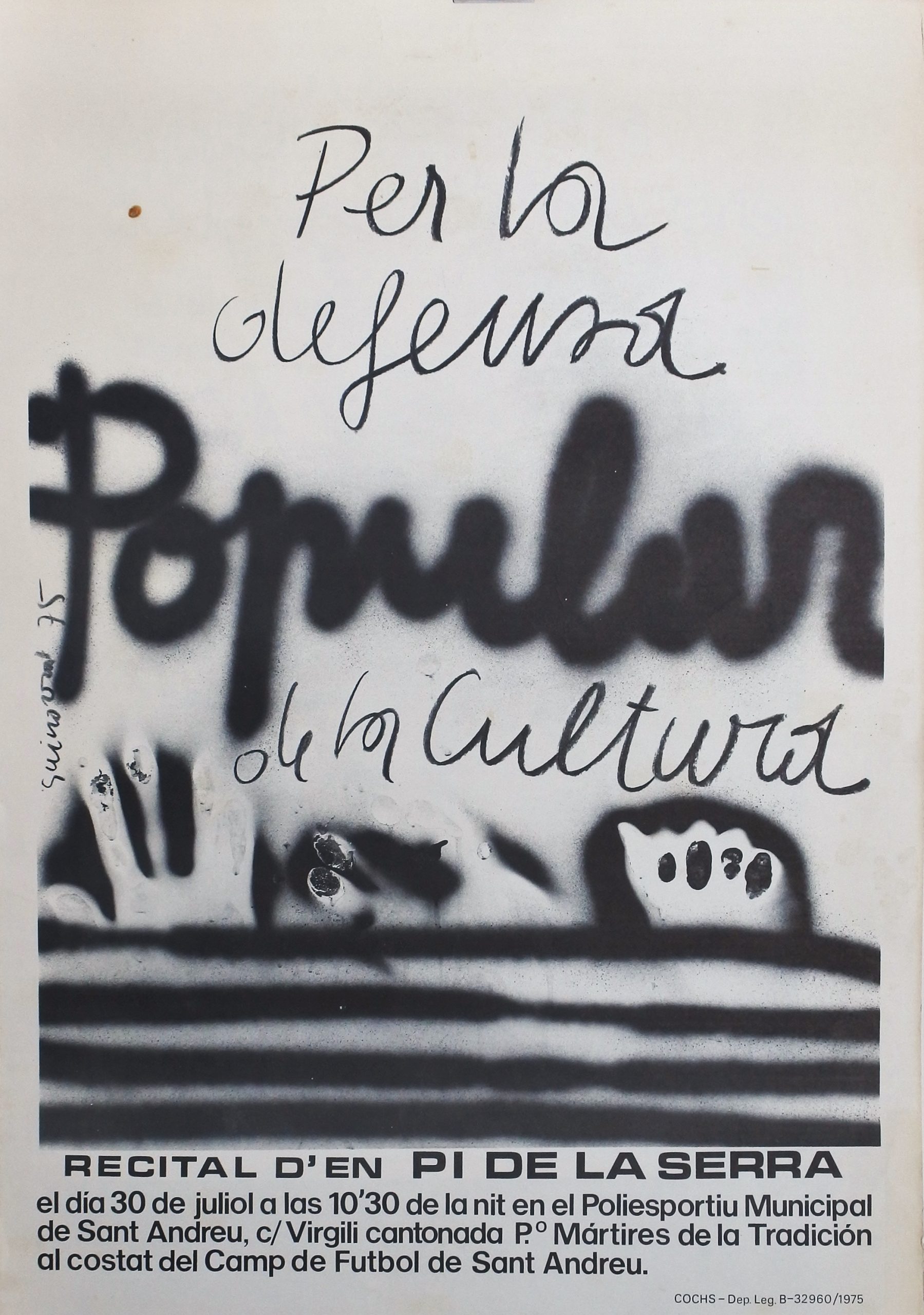 Josep Guinovart, Per la defensa de la cultura popular, cartel original recital Pi de la Serra en 1975, 64×44 cms.