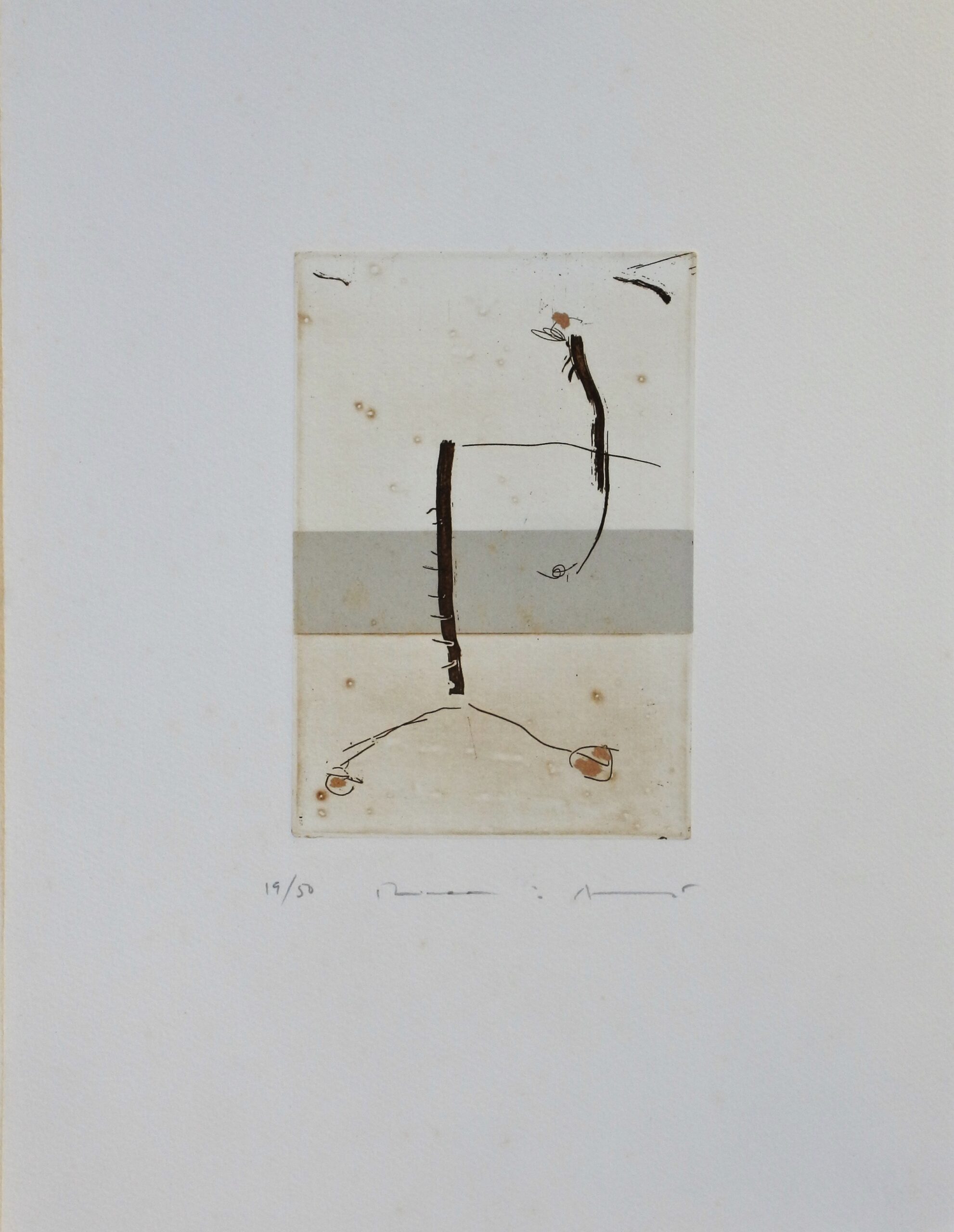 Josep Maria Riera i Aragó, avió amb hèlix a la dreta, grabado aguafuerte, edición de 50 ejemplares, numerado y firmado a lápiz, plancha 17×12 cms. y papel 38×28 cms.