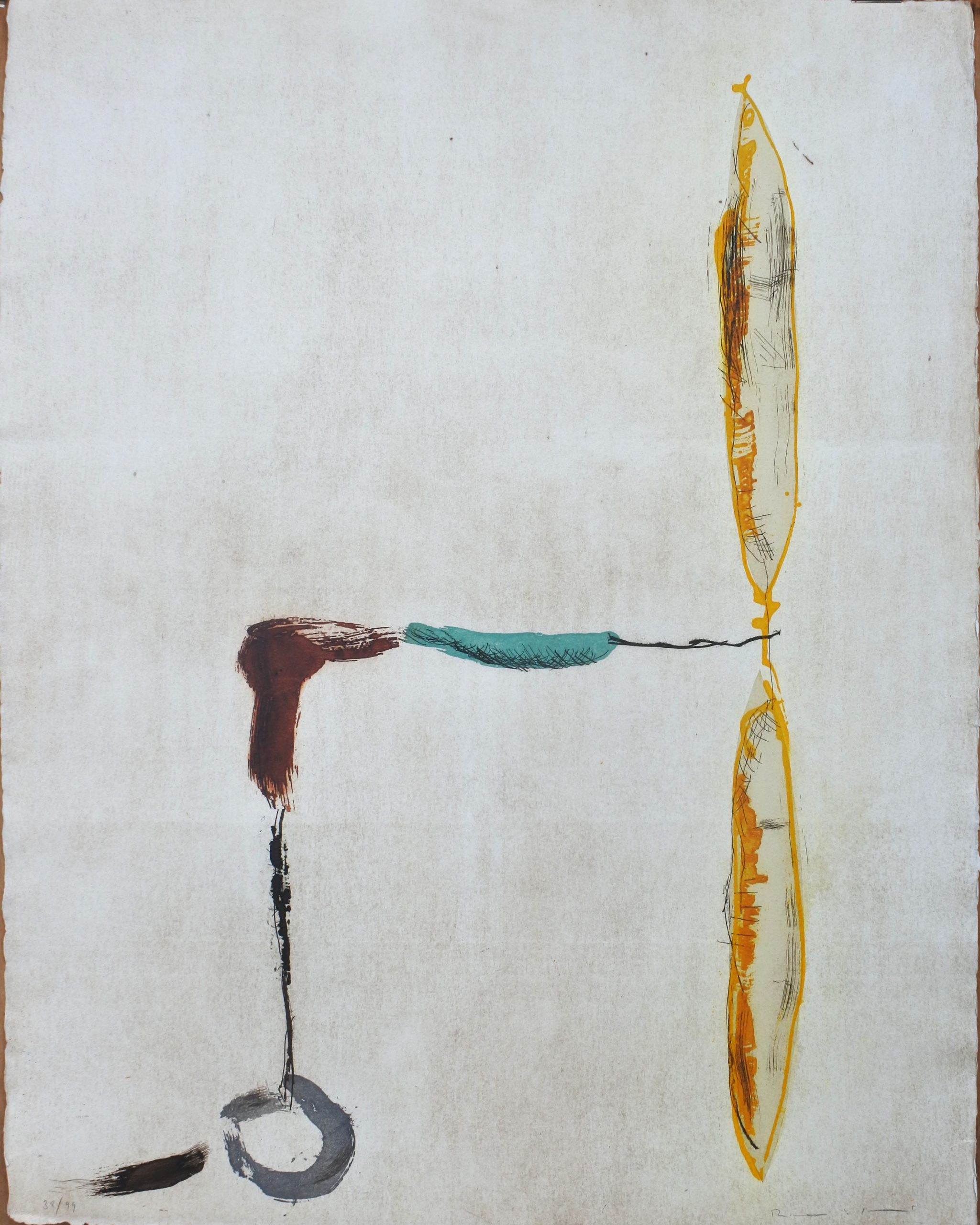 Josep Maria Riera i Aragó, Avió vertical, grabado y collage, edición 99 ejemplares, numerado y firmado a lápiz, 95×74 cms.