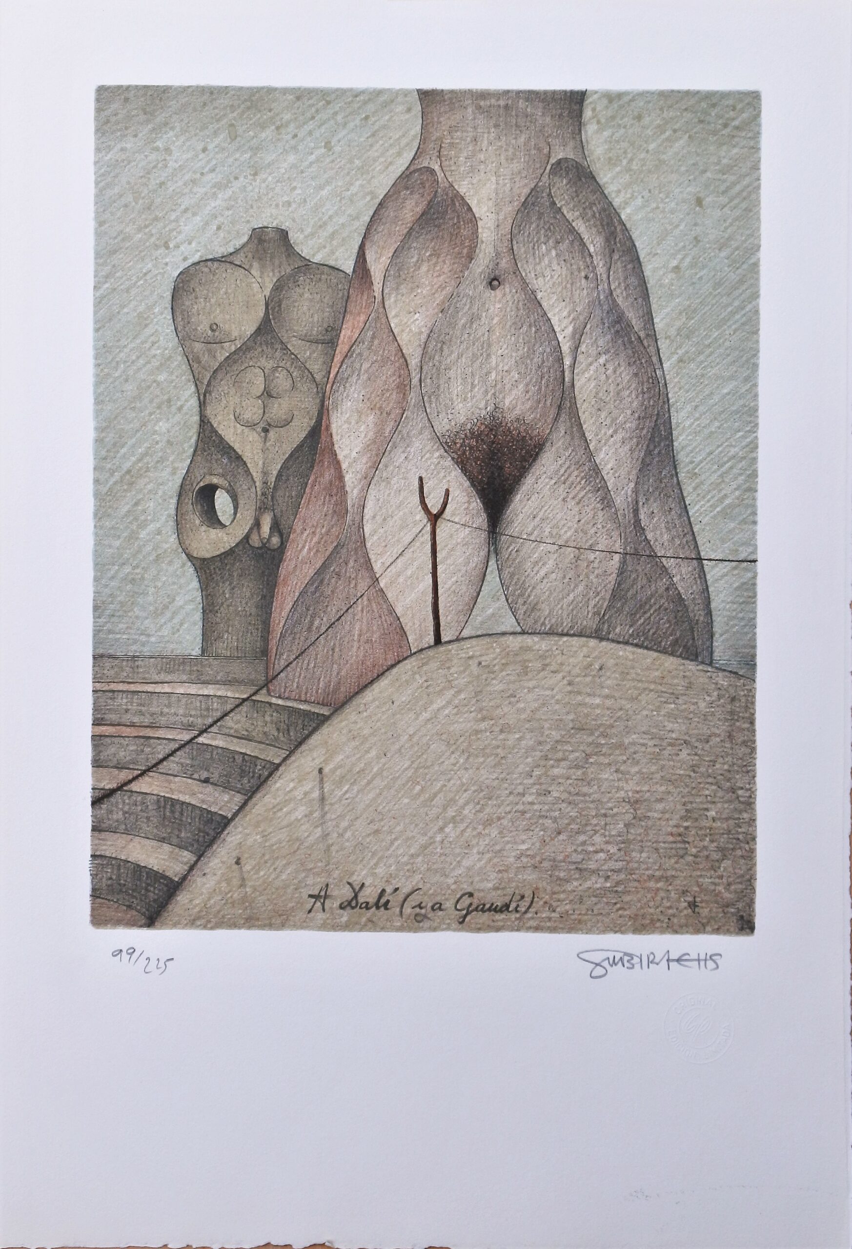 Josep Maria Subirachs, A Dalí (y a Gaudí), litografia, edición 225 ejemplares, numerado y firmado a lápiz, 53×37 cms.