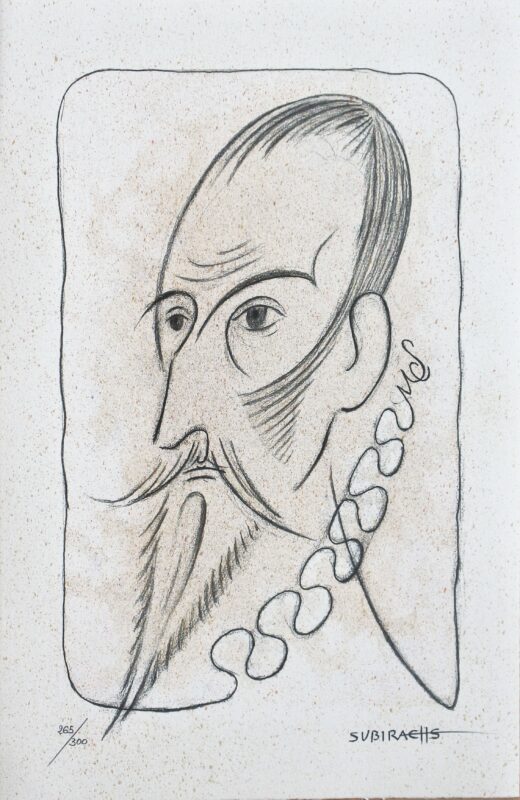 Josep Maria Subirachs, Cervantes, litografia, edición 300 ejemplares, numerado y firmado a lápiz, editado para IV centenario del Quijote, 30×46 cms.
