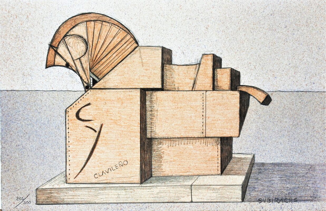 Josep Maria Subirachs, Clavileño, litografia, edición 300 ejemplares, numerado y firmado a lápiz, editado para IV centenario del Quijote, 30×46 cms.
