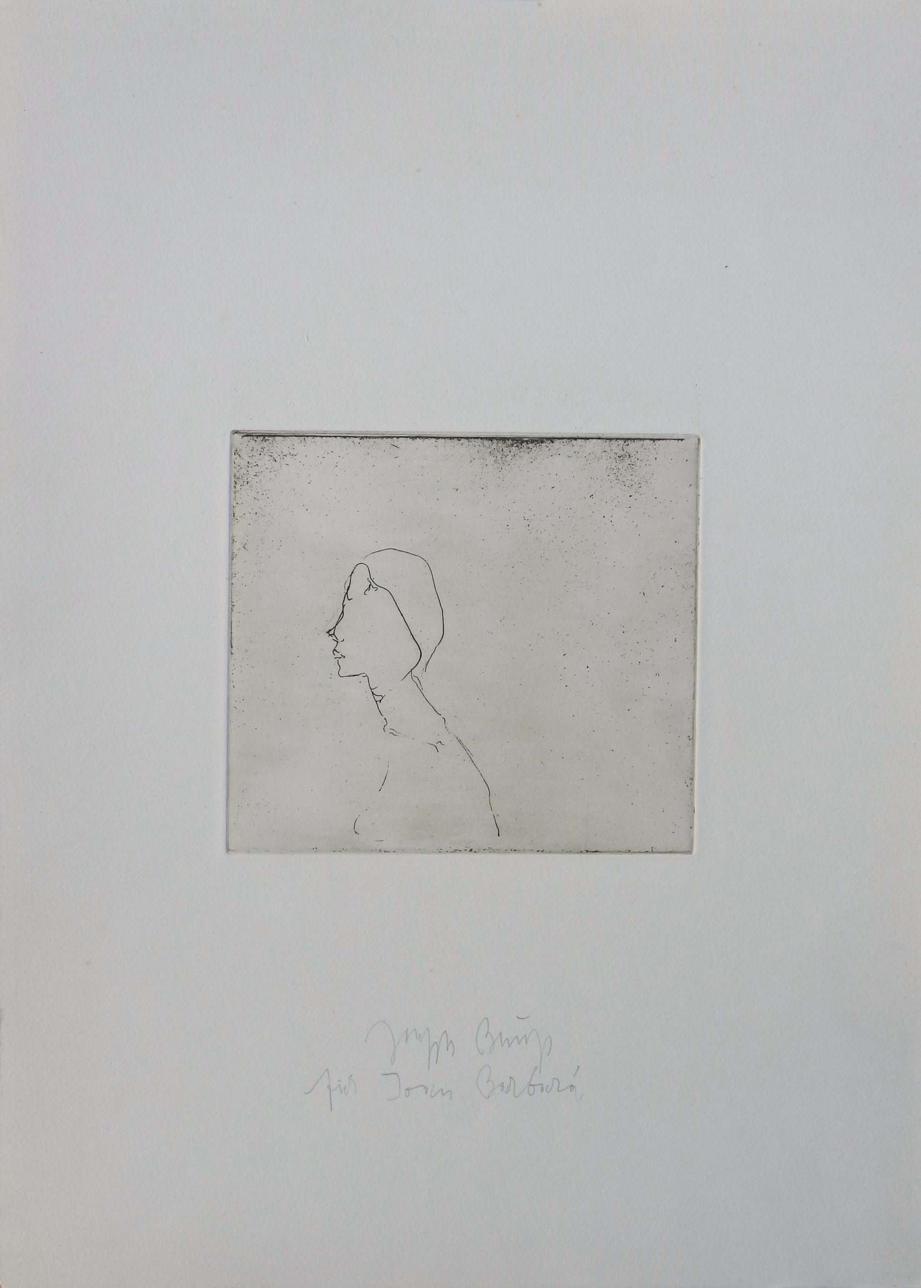 Joseph Beuys, Zirkulationszeit `Kopf H.B,1982, grabado aguatinta, firmado a lápiz y dedicado al editor Josep Barberá, plancha 14,50×16 cms. y papel 45×33 cms.