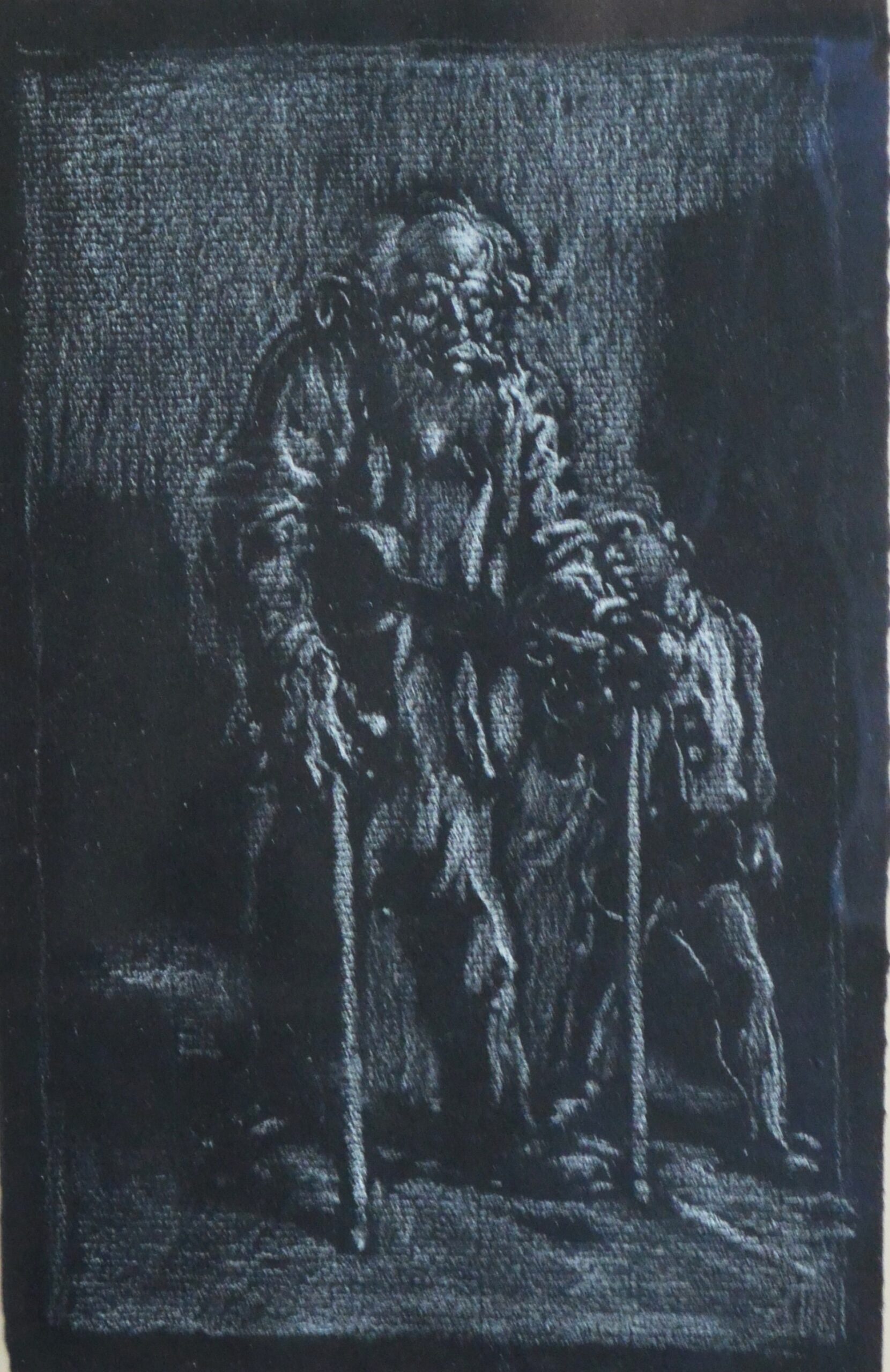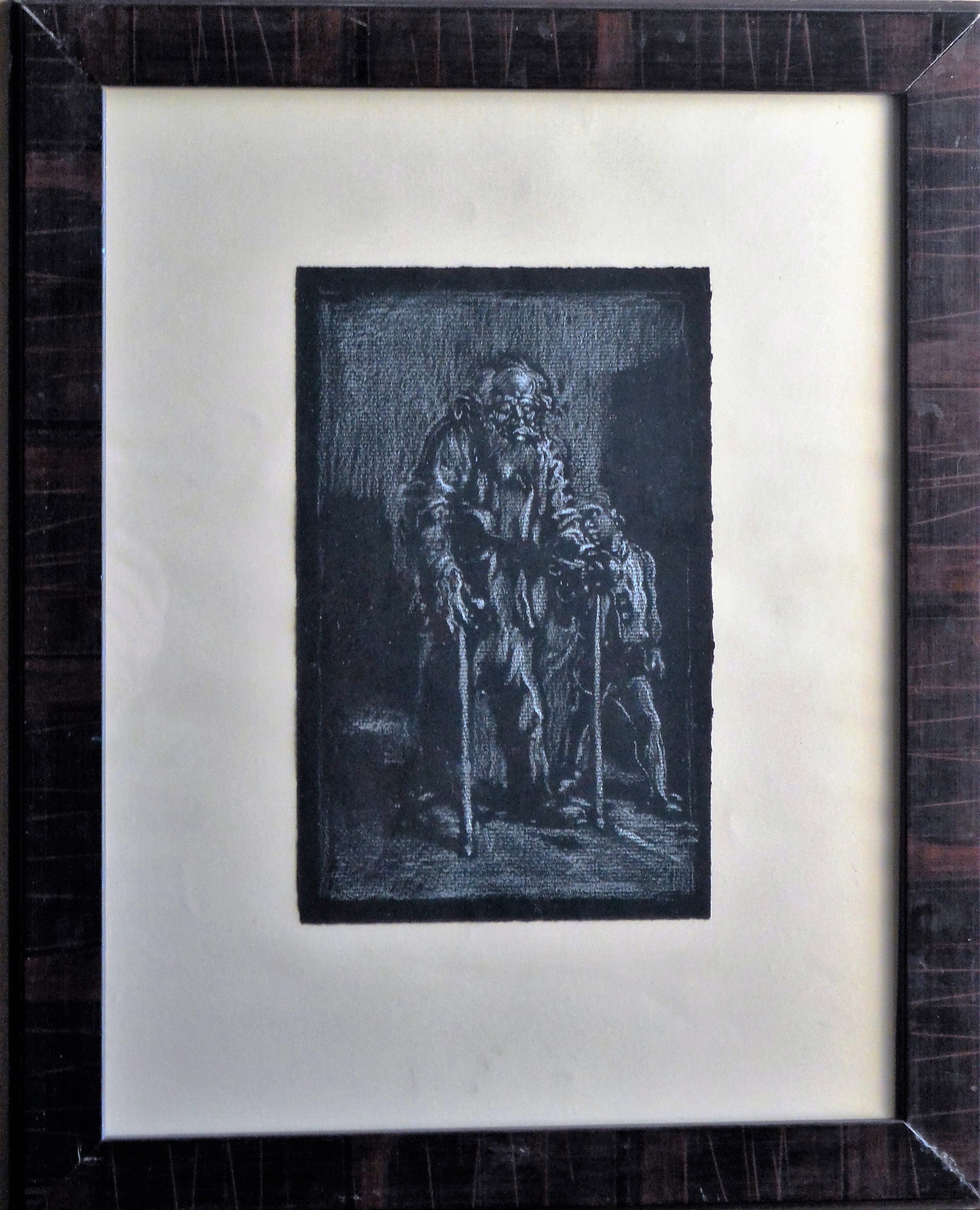 Juan Barba, Anciano y niño, lapiz clarión cartulina negra, enmarcado, dibujo 24,50×15,50 y marco 4×37 cms. Marco incluido