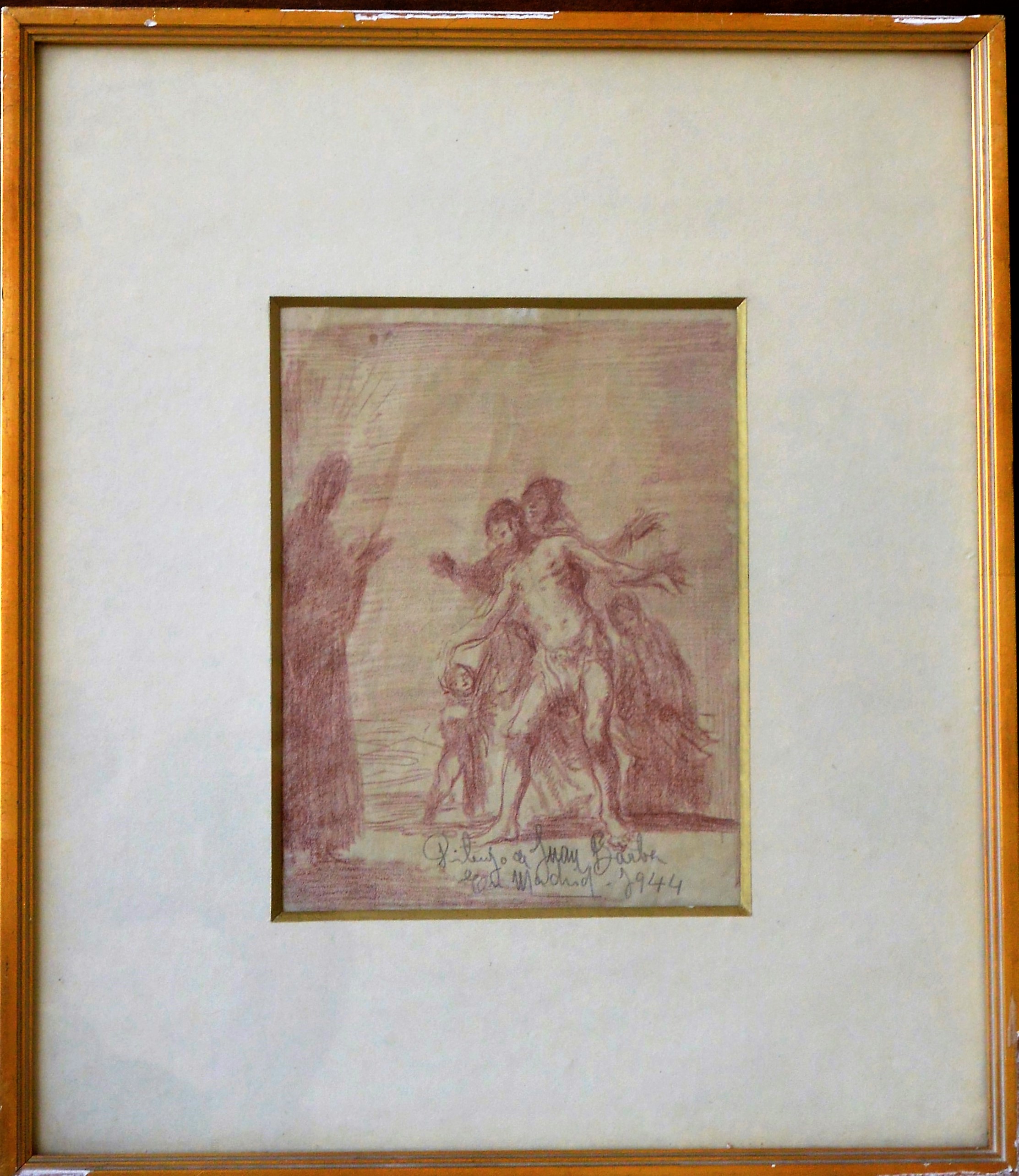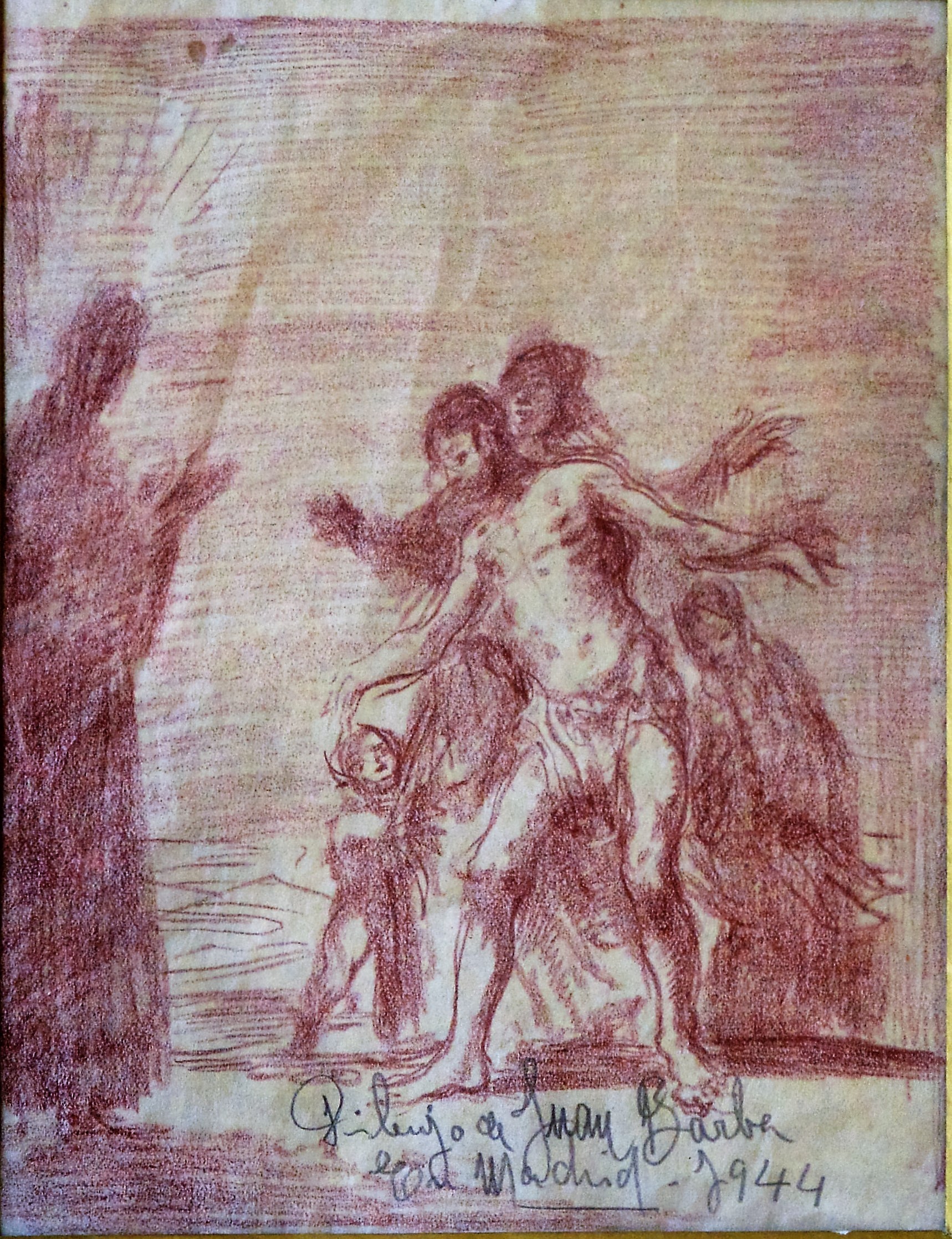 Juan Barba, Bautismo, dibujo lápiz sanguina papel, enmarcado, dibujo 19,50×15 cms. y marco 37×32 cms. Marco incluido