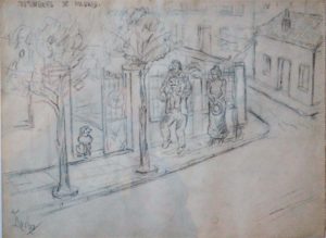 Juan Barba, Costumbres de Madrid, Paseo, dibujo lápiz papel, enmarcado, dibujo 21,50×29 cms. y marco 36×46 cms.