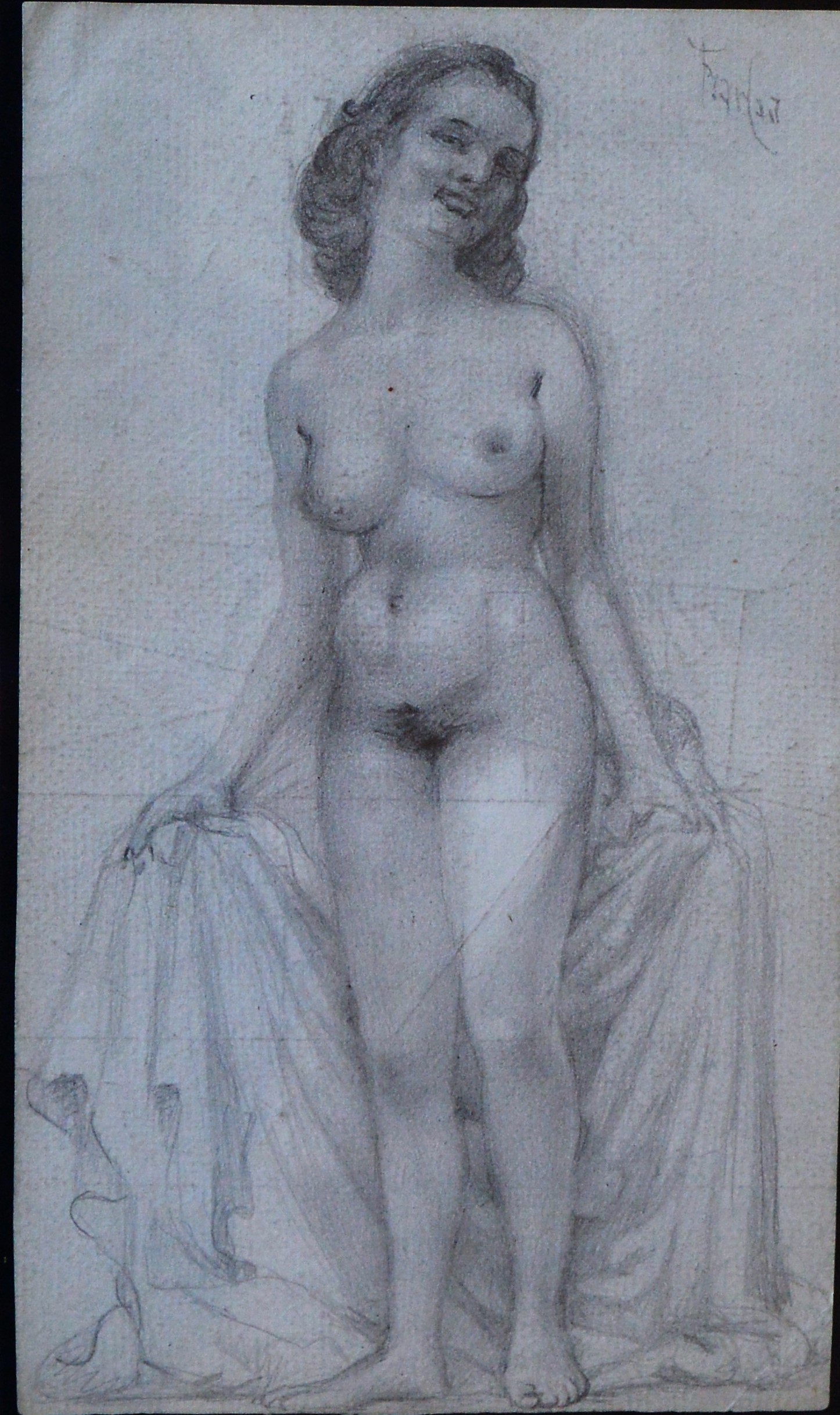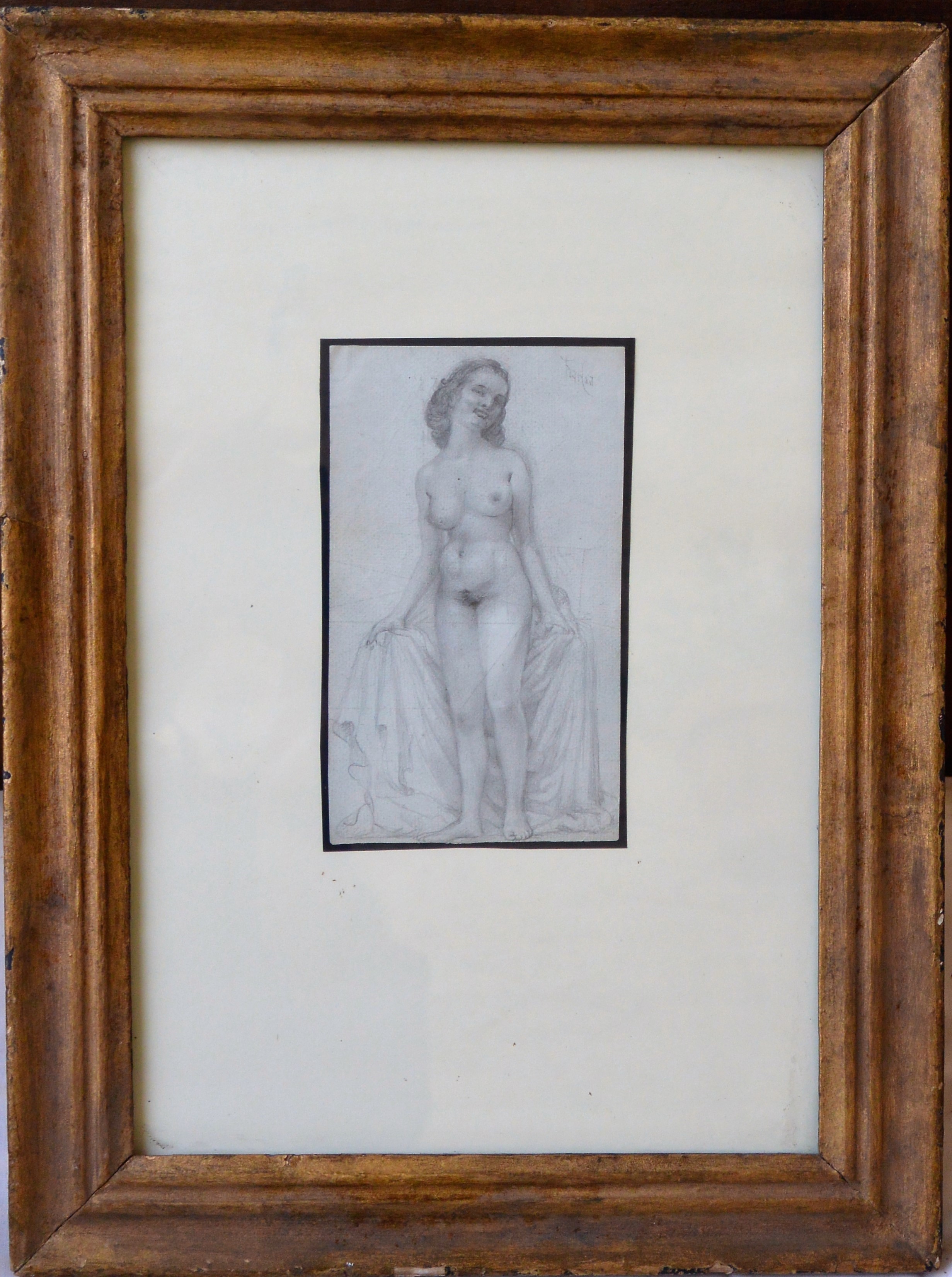 Juan Barba, Mujer desnuda con sábana, dibujo lápiz papel, enmarcado, dibujo 16×9,50 cms. y marco 40×30 cms. Marco incluido