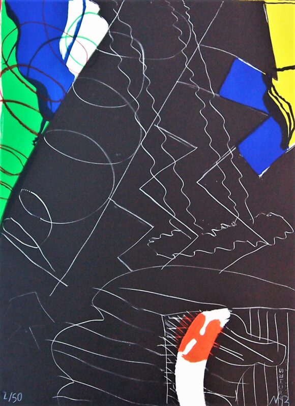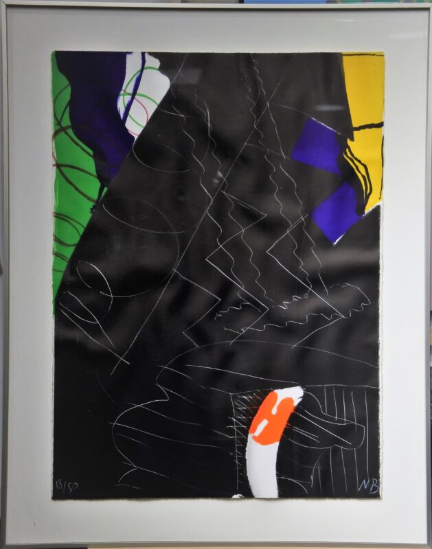 Juan Navarro Bardeweg 1996, Serie noche # 7, litografía, edición de 50 ejemplares, numerado y firmado a lápiz, enmarcado, obra 76×56 cms., y marco 92×73 cms