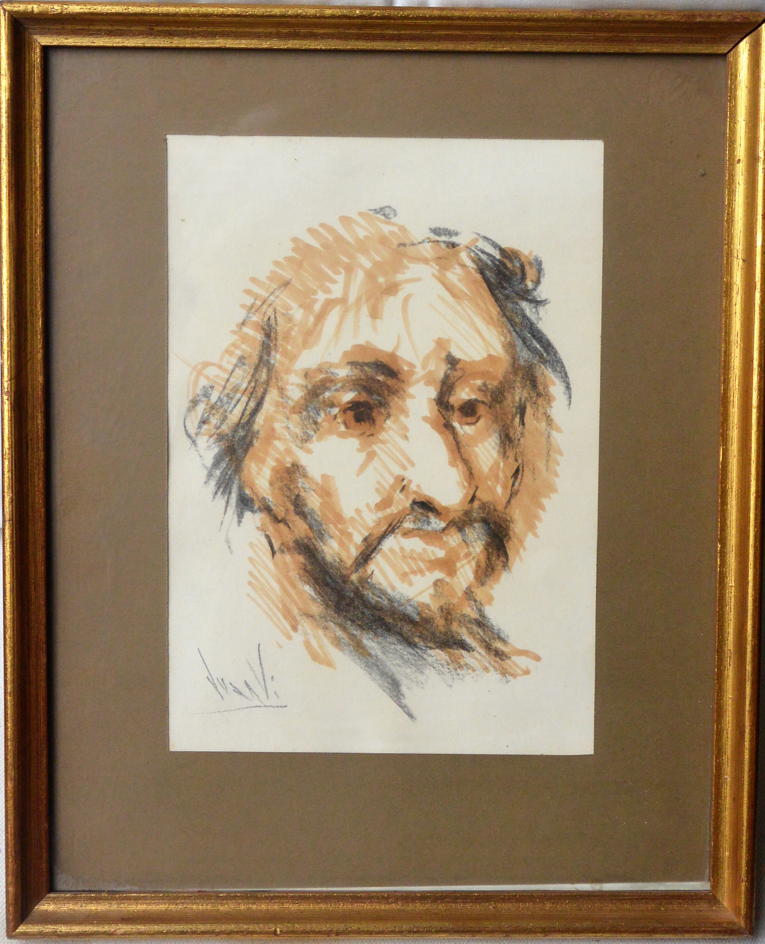 Juan Vicente Barrio Juanvi – «Cabeza de caballero» dibujo carboncillo y aguada papel, enmarcado