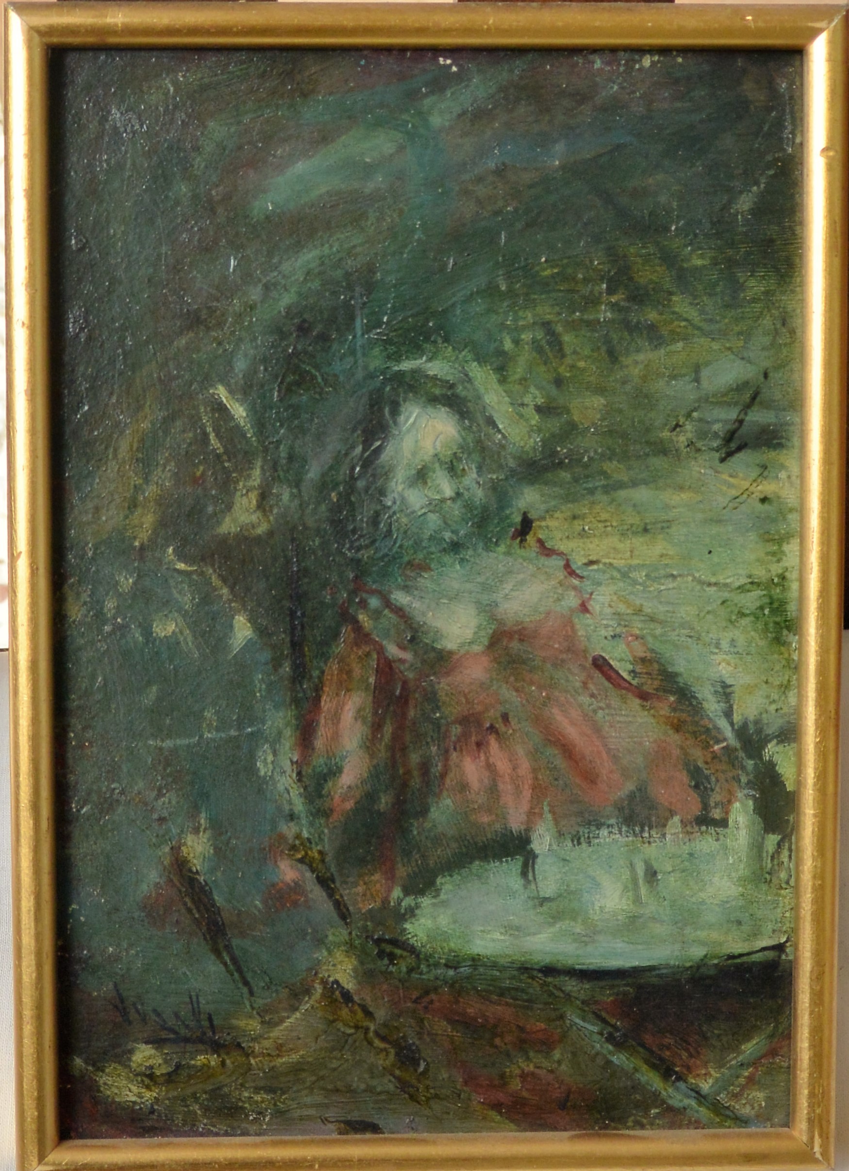 Juan Vicente Barrio Juanvi, En la terraza, pintura oleo tablex, 25×17 cms.