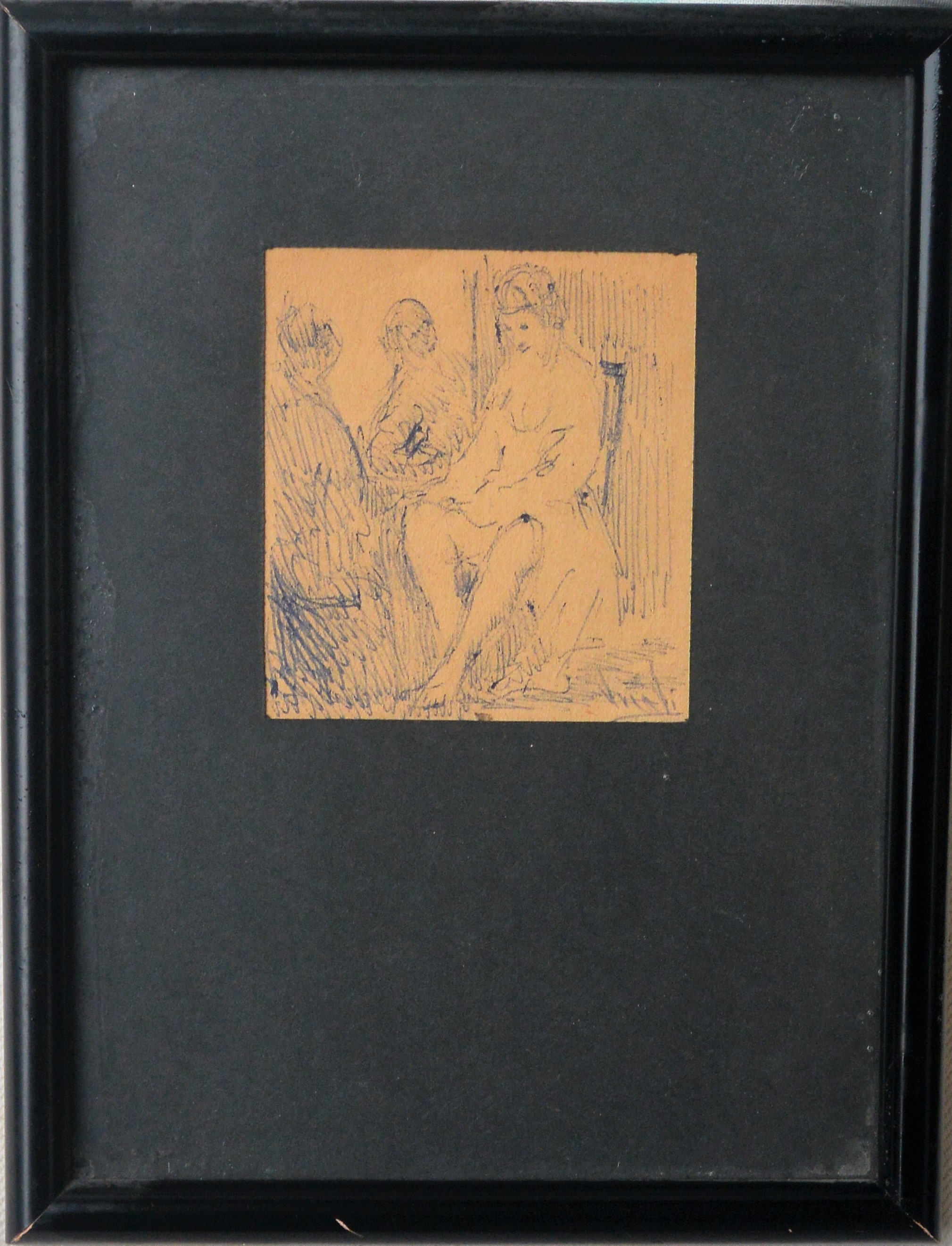 Juan Vicente Barrio Juanvi, escena doméstica, dibujo tinta papel, enmarcado, dibujo 8×7,50 cms. y marco 21×16 cms.