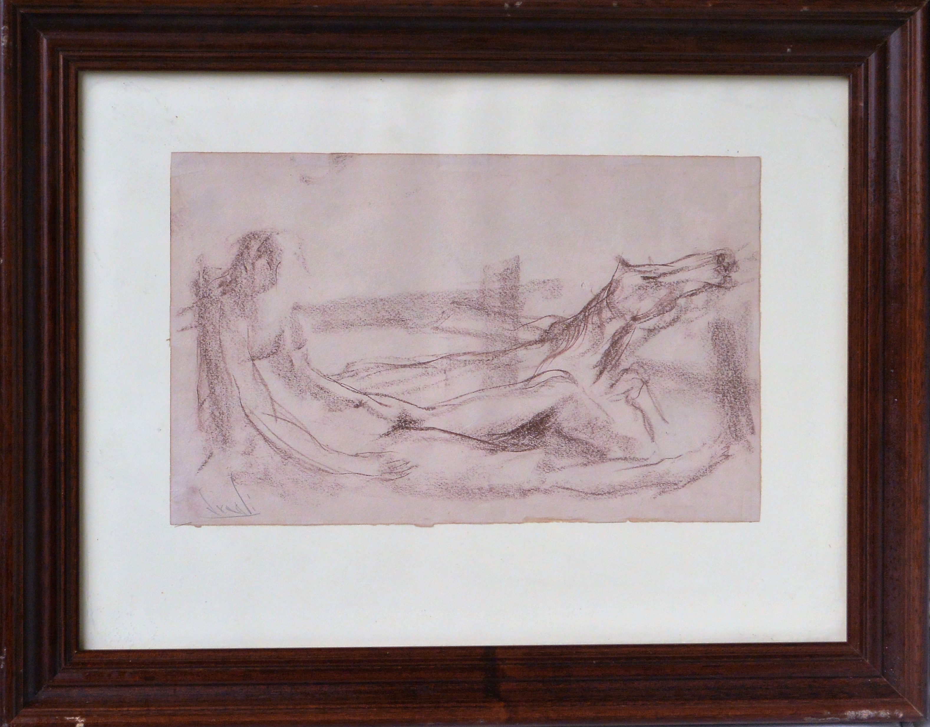 Juan Vicente Barrio Juanvi, Joven caida del caballo II, dibujo carboncillo papel, enmarcado, dibujo 19×30 cms. y marco 46,50×36,50 cms.