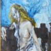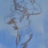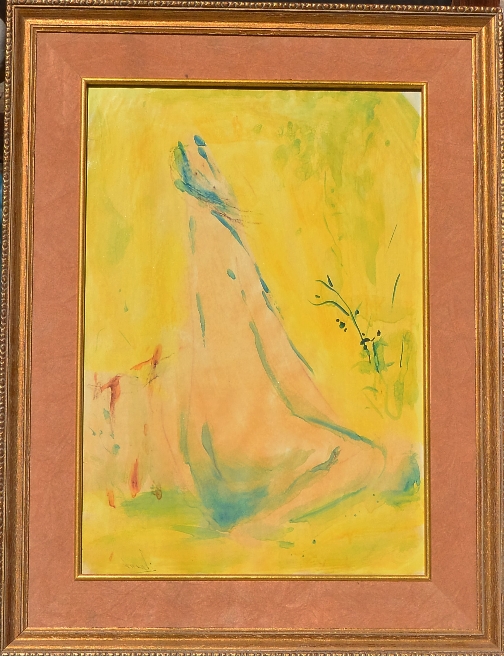 Juan Vicente Barrio Juanvi, Joven sentada fondo amarillo, acuarela papel, enmarcado, pintura 49×34 cms. y marco 64×49 cms.