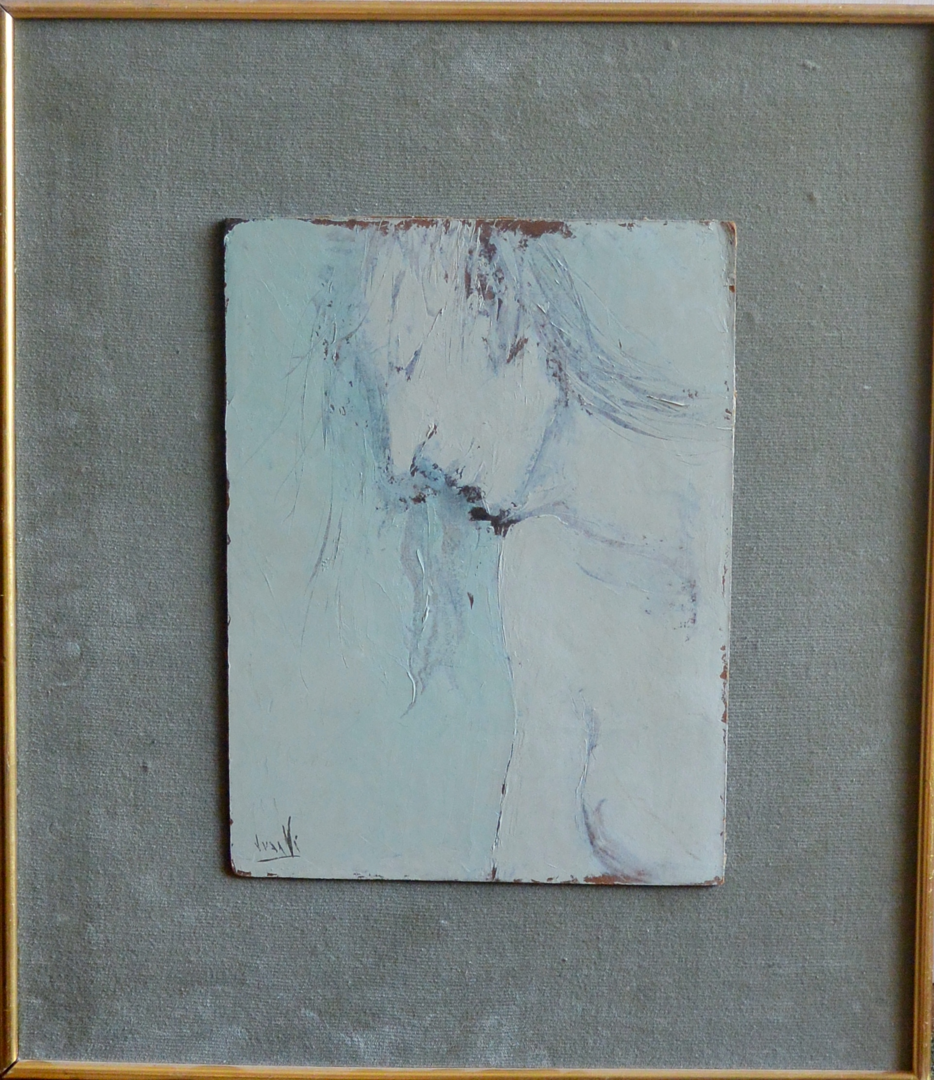 Juanvi, Juan Vicente Barrio, busto mujer de perfil, oleo tablex, enmarcado, pintura 34×25,50 cms. y marco 55×48 cms. Marco incluido