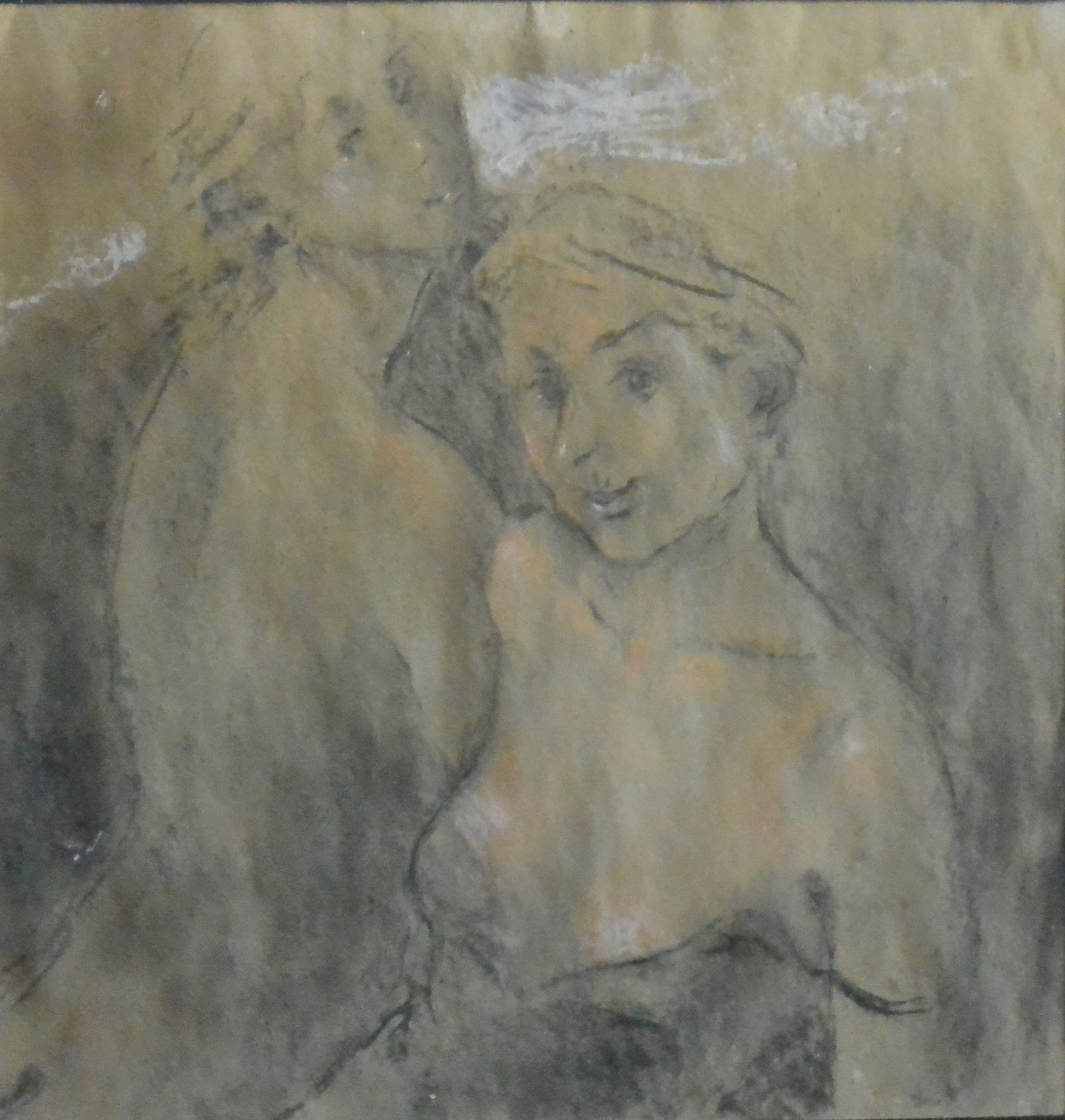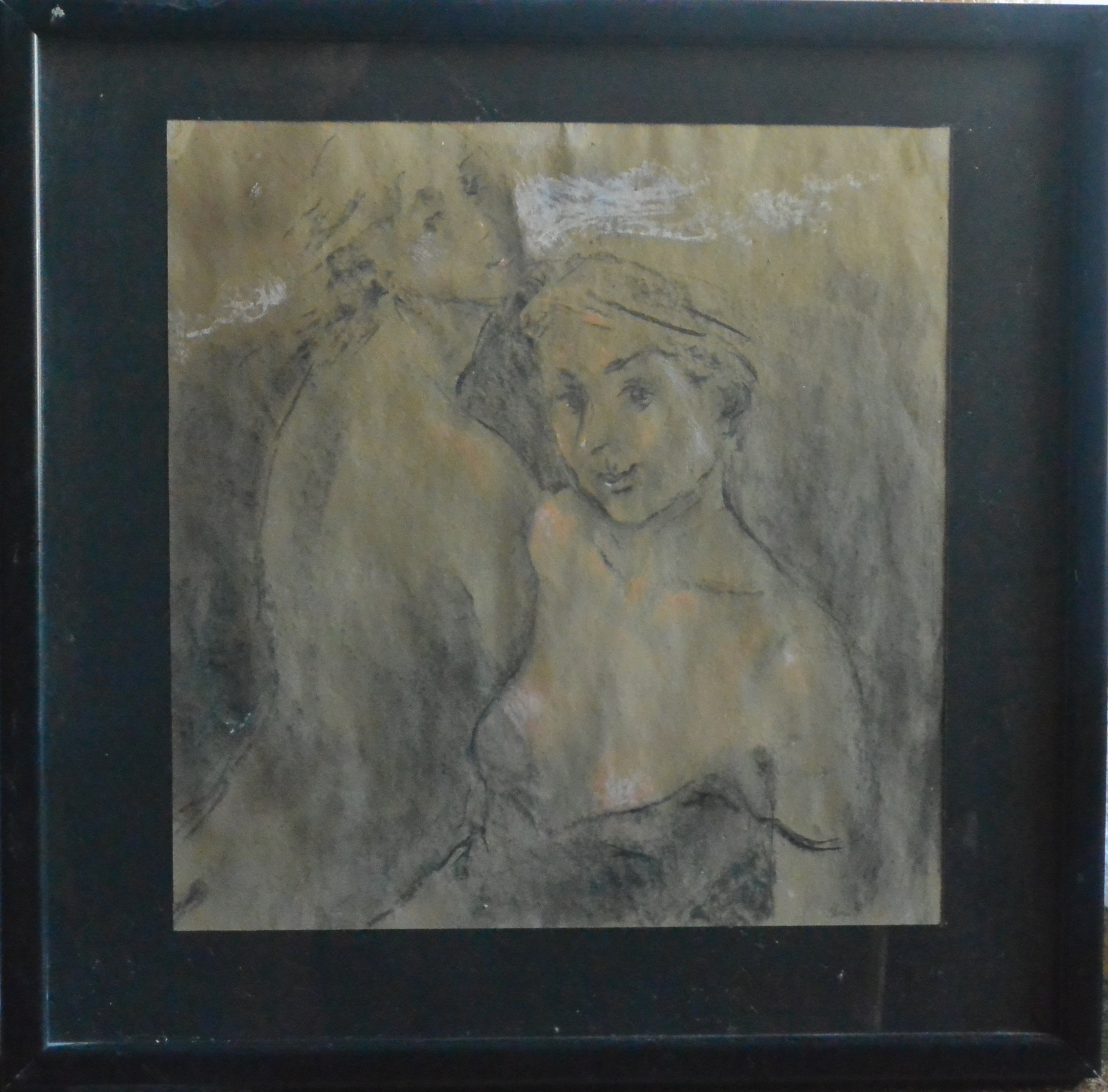 Juanvi, Juan Vicente Barrio, Dos jóvenes, dibujo carboncillo y clarión papel, enmarcado, dibujo 36,50×35 cms. y marco 49×49,50 cms. Marco incluido