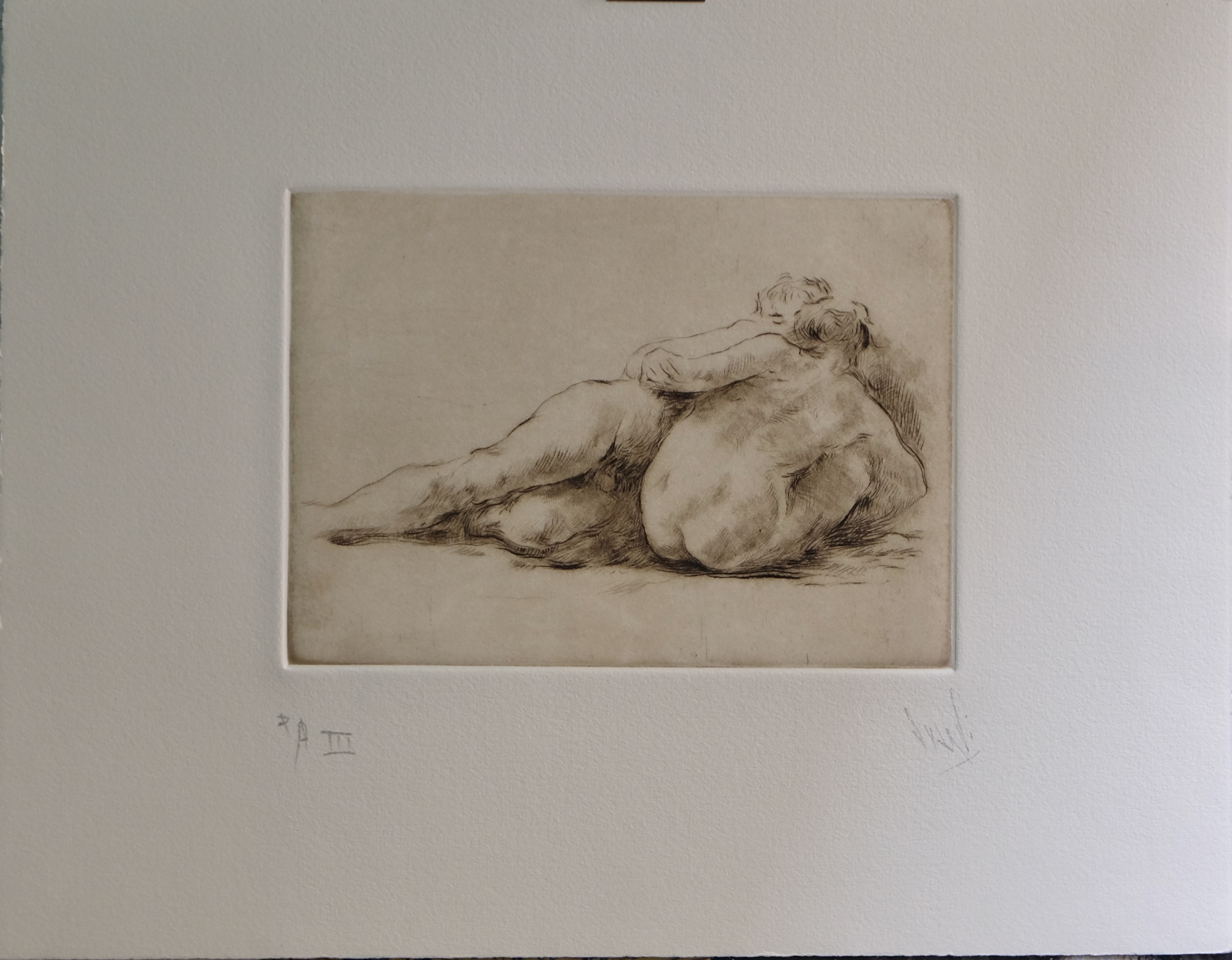 Juan Vicente Barrio, Juanvi, Pareja en el suelo, grabado, edición 100 ejemplares, numerado y firmado a lápiz. Plancha: 14X19 cms. y papel: 28X37 cms.