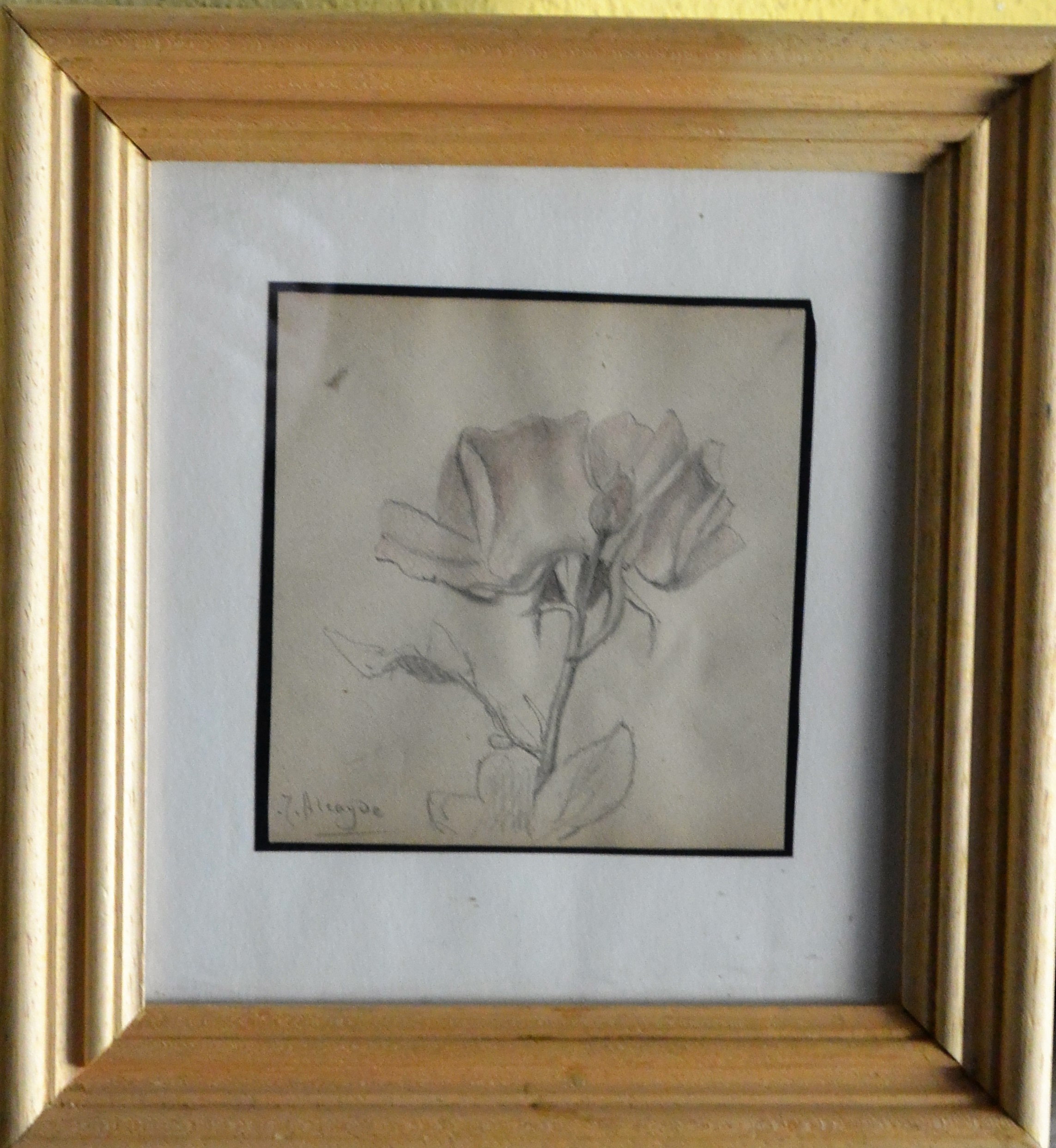 Julia Alcayde, estudio de planta, dibujo lápiz papel, enmarcado, dibujo 13×12,50 y marco 27×25 cms. Marco incluido