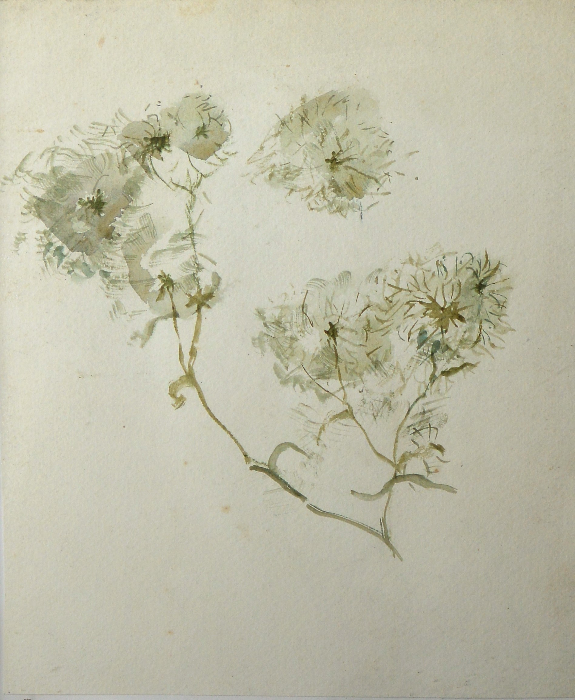 Julia Alcayde, Plantas, dibujo acuarela papel, enmarcado, dibujo 25,50×20,50 cms. y marco 29×24 cms.