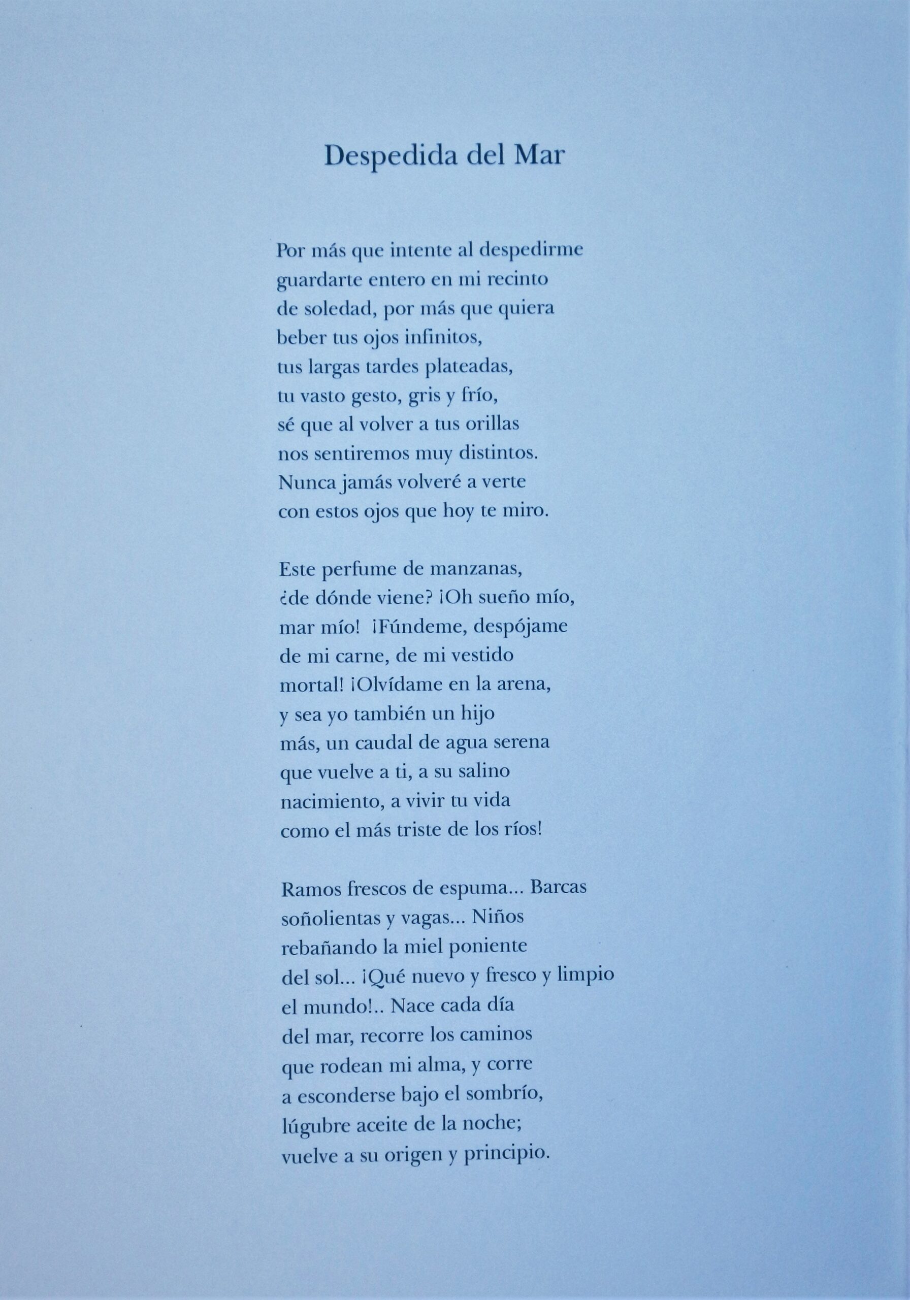 Julian Grau Santos, Despedida del mar, serigrafia, edición 100 ejemplares, numerado y firmado a lápiz, 32×23 cms. se acompaña con un poema de José Hierro