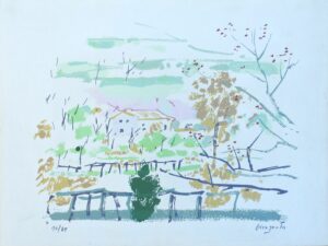 Julian Grau Santos, Paisaje rural, litografia, edición 65 ejemplares, numerada y firmada a lápiz, 37×49,50 cms.