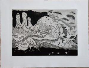 Julio Zachrisson – «Pan-Amá IV, presagios» grabado aguafuerte