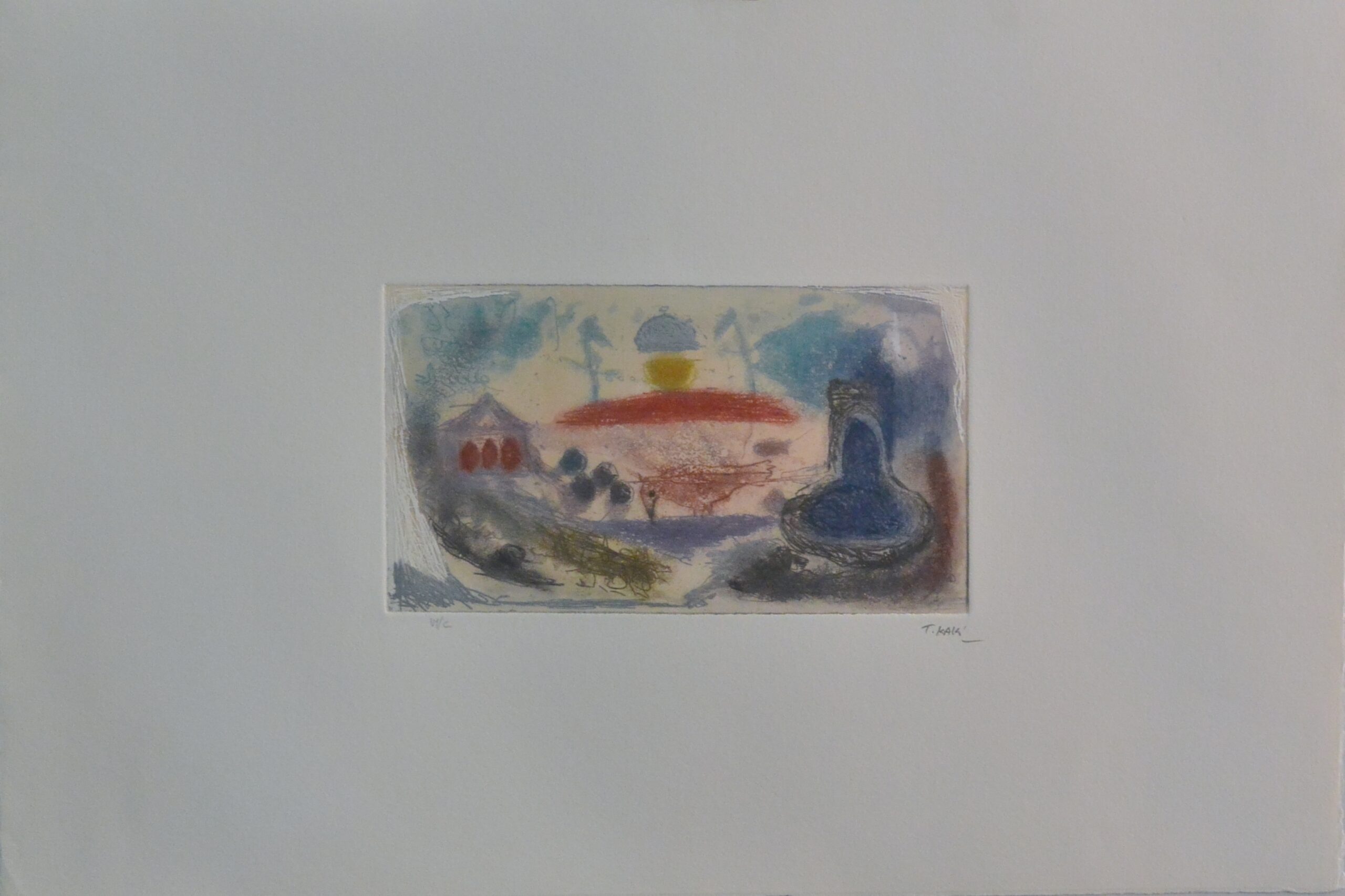 Kaki Jafar T., Fiesta, grabado numerado hc y firmado a lápiz, plancha 14×24 cms. y papel 38×58 cms.