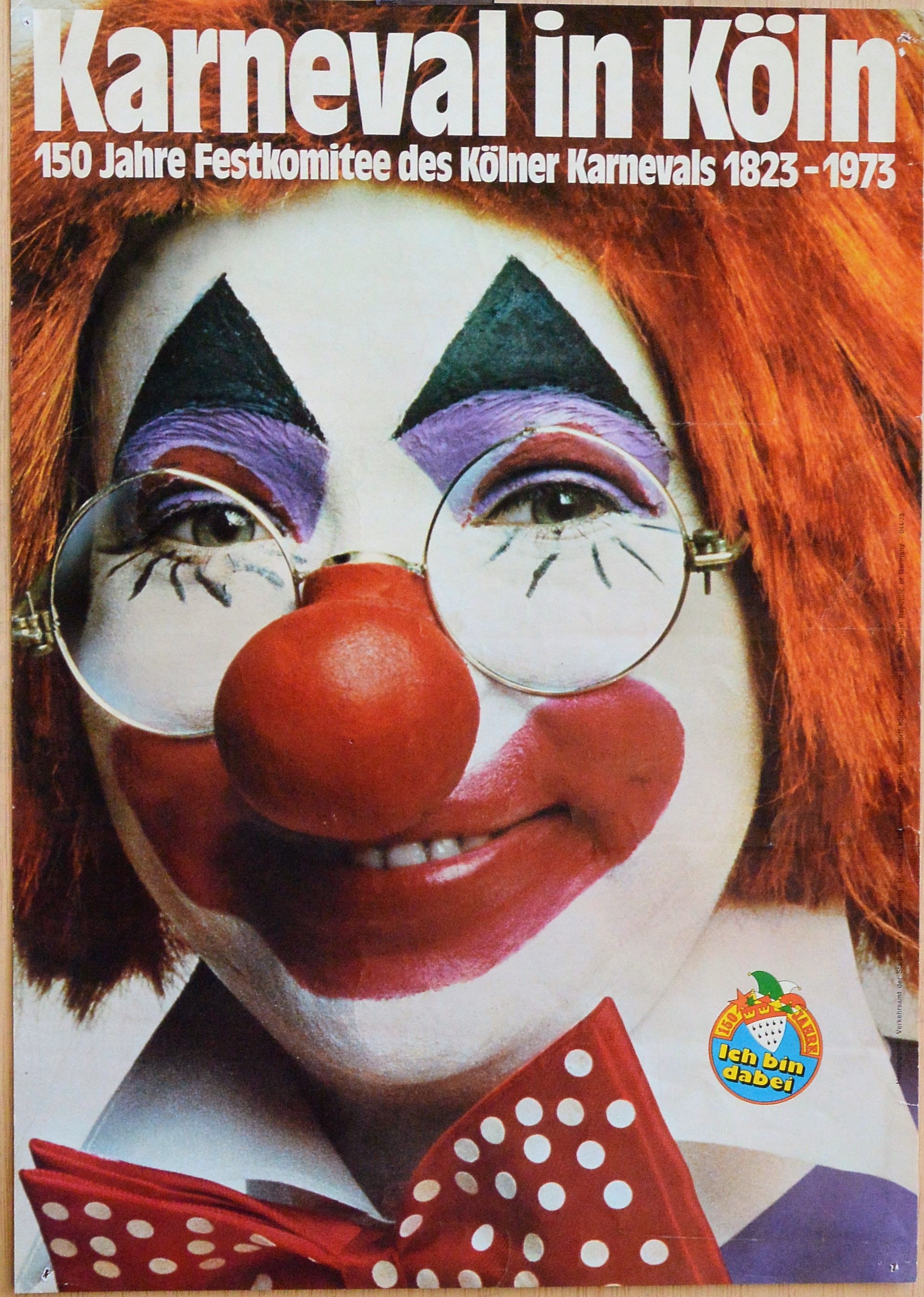 Karneval in Köln, Ich bin dabei, cartel promoción carnaval Colonia en 1973, 42×29,50 cms.